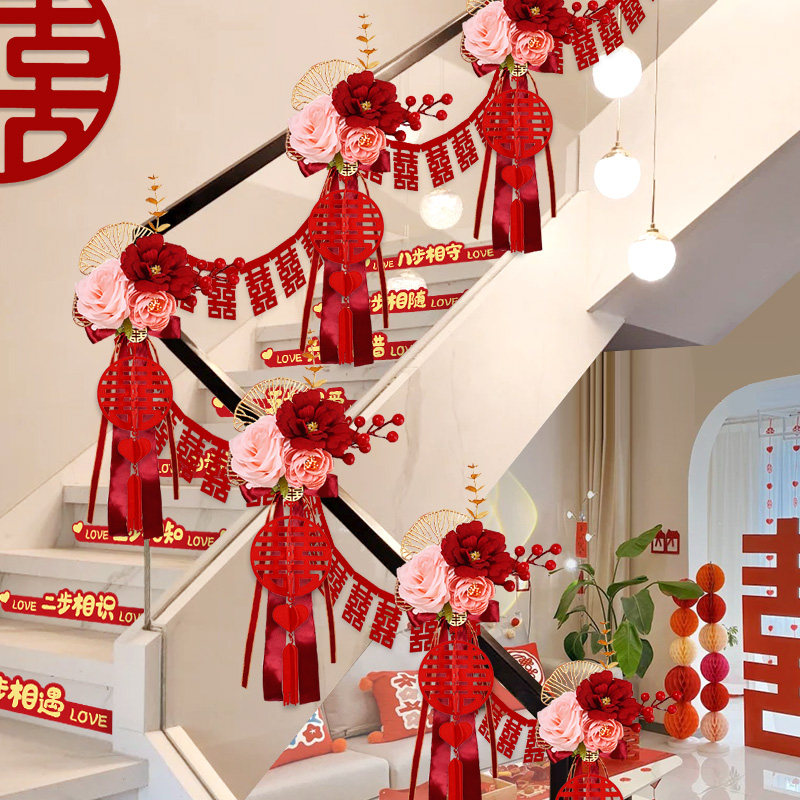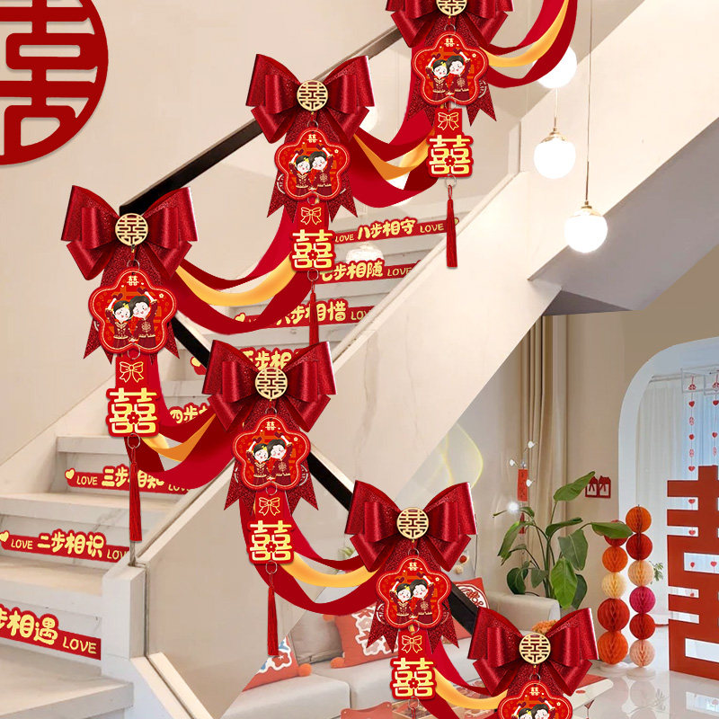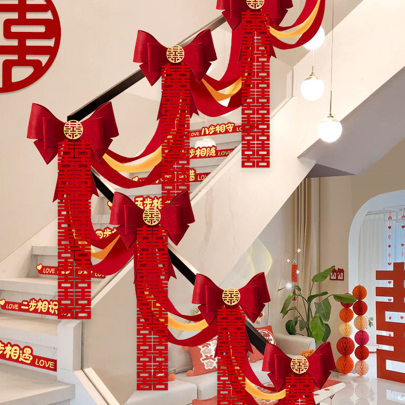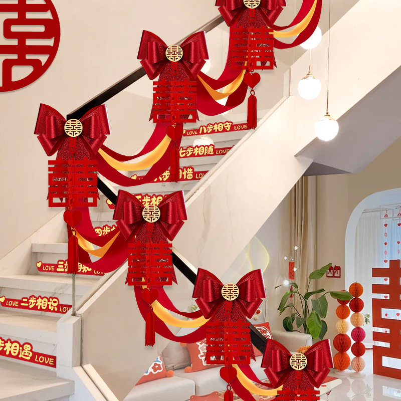 结婚楼梯扶手装饰婚房布置男方女方婚礼喜字台阶拉花婚庆用品大全
