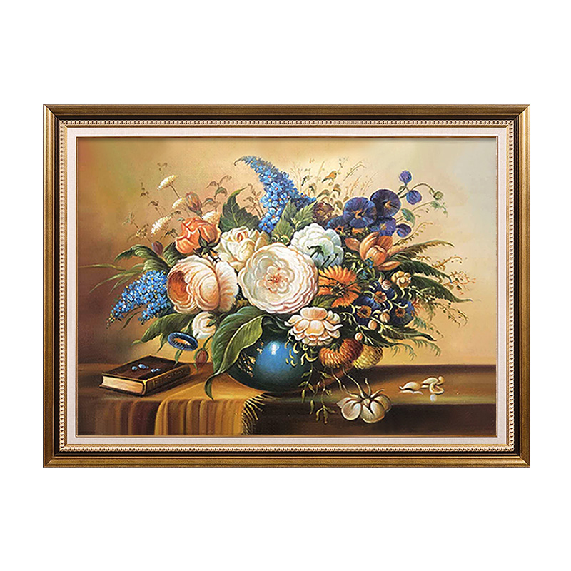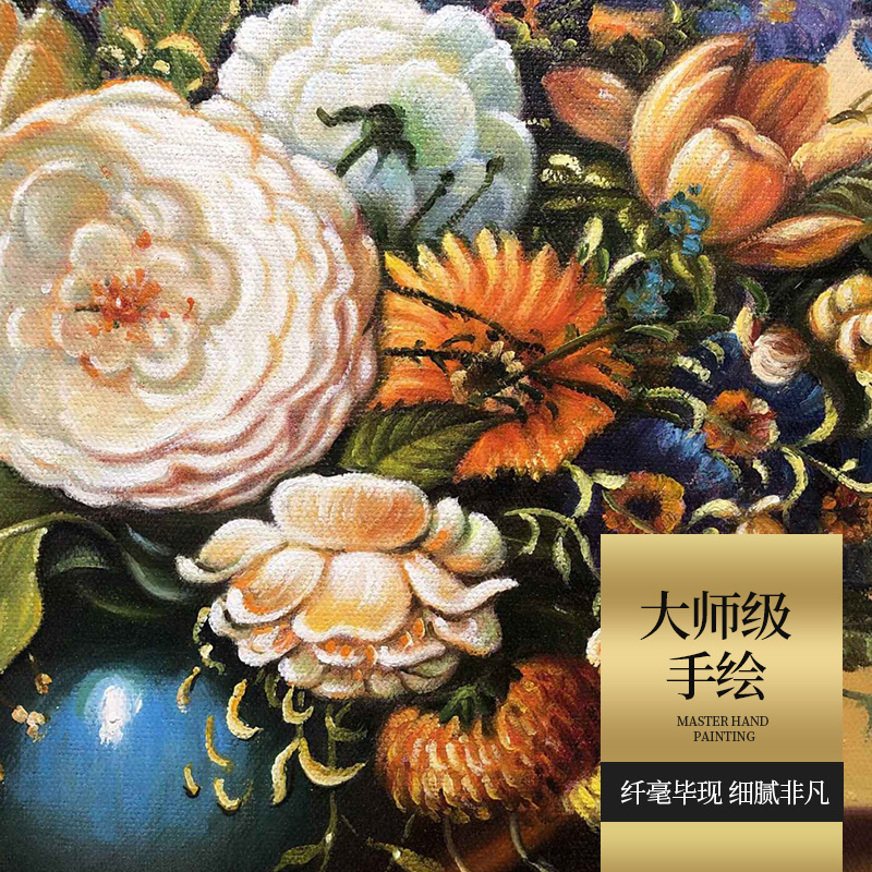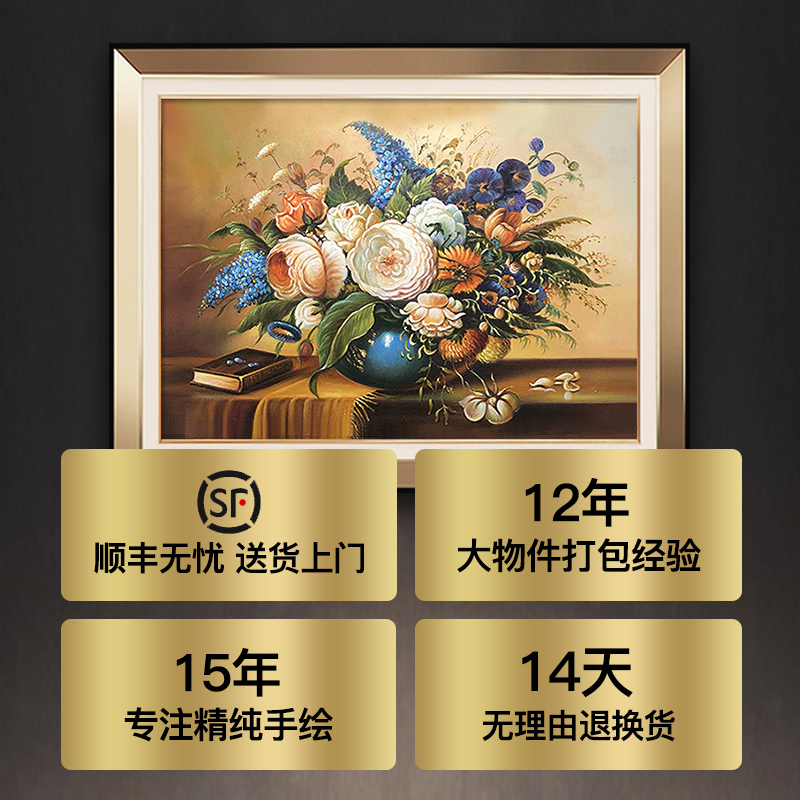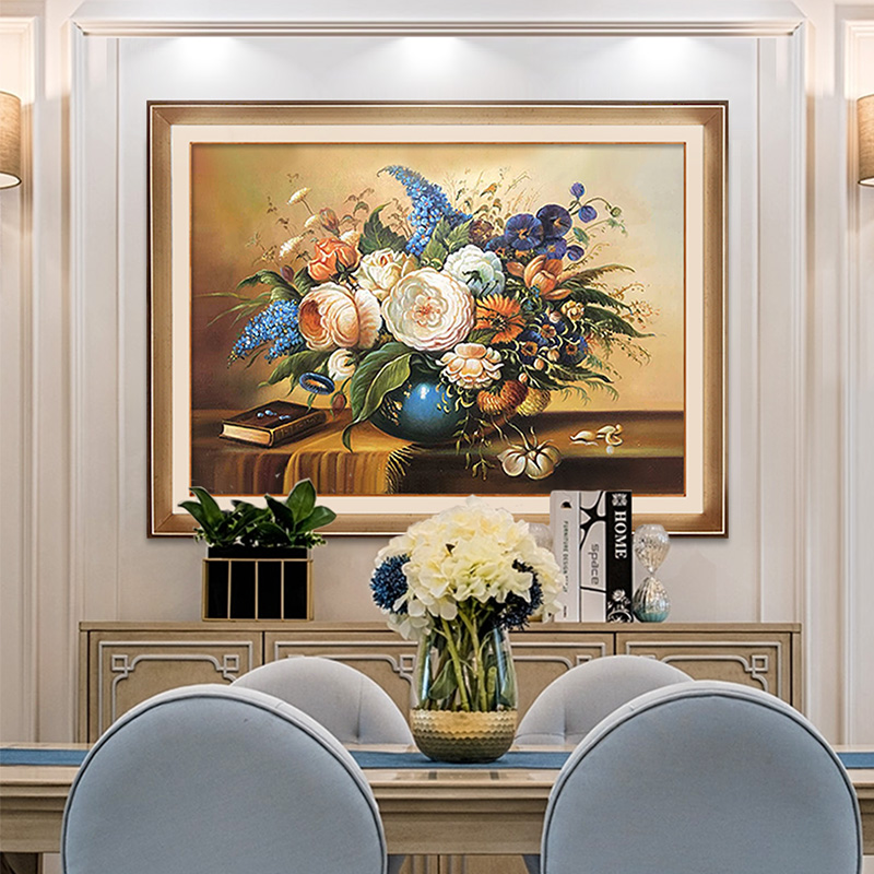美式轻奢b餐厅装饰画欧式客厅饭厅壁画玄关酒柜挂画纯手绘花卉油