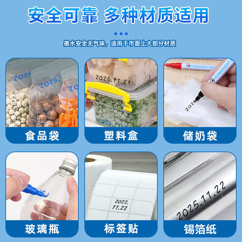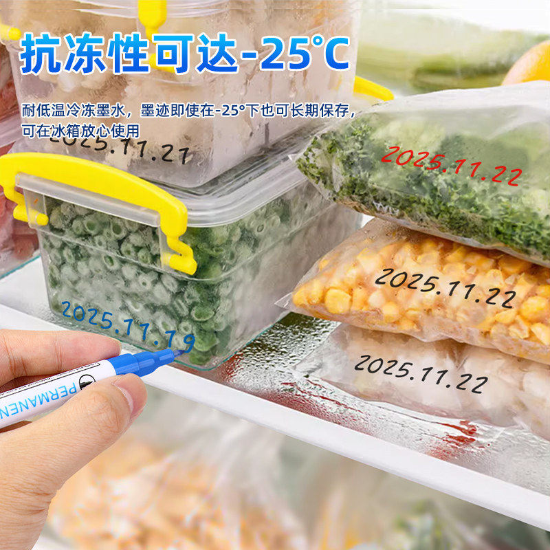 专用低温记号笔冰箱冷冻记号标记笔食品包装袋实物有效期日期书写母乳储奶袋低温马克笔防冻速干不掉色细头笔