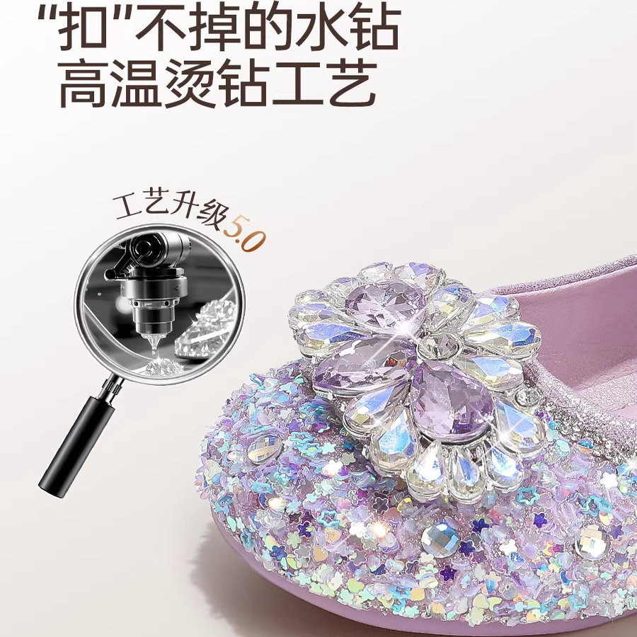真皮艾莎公主鞋女童水晶鞋小皮鞋