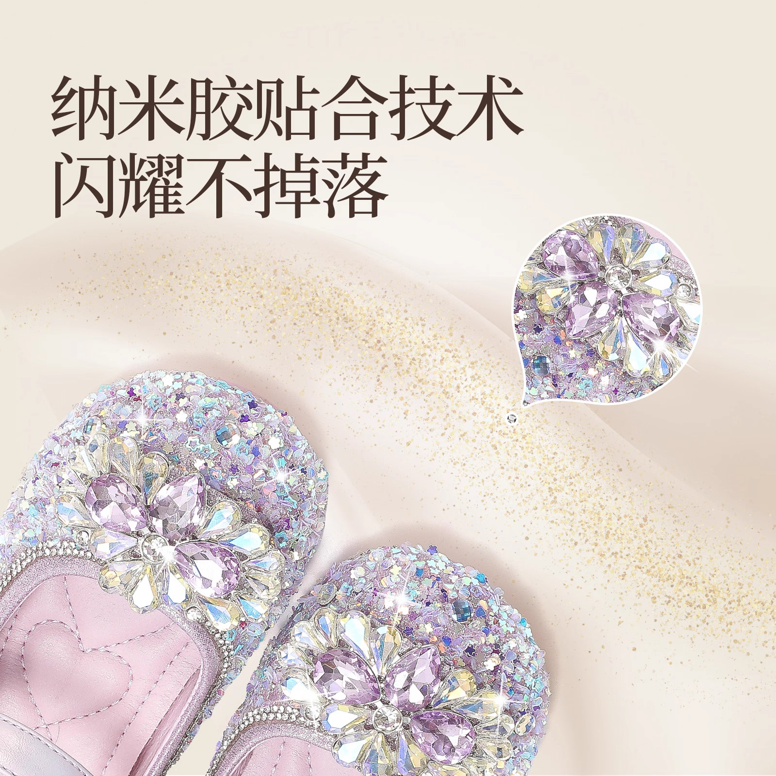 真皮艾莎公主鞋女童水晶鞋2025新款秋季儿童小皮鞋女宝宝单鞋软底