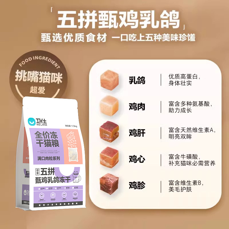 卫仕乳鸽冻干猫粮幼成猫鲜肉高蛋白肠胃国产营养品牌官方正品