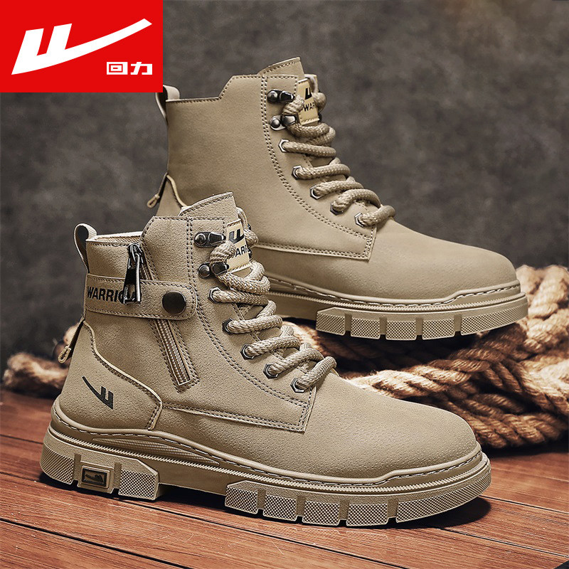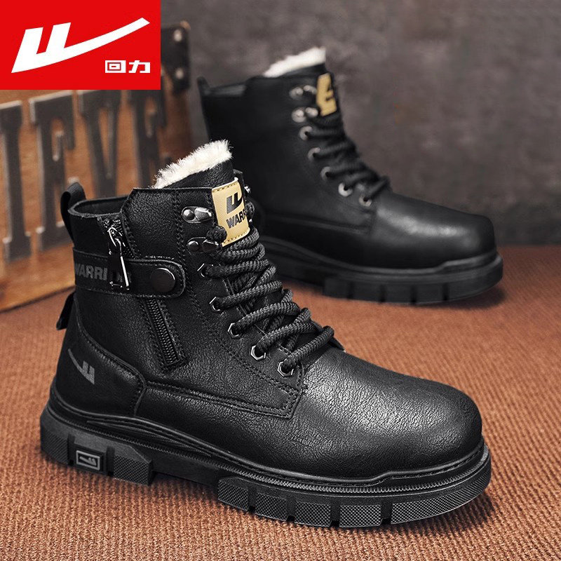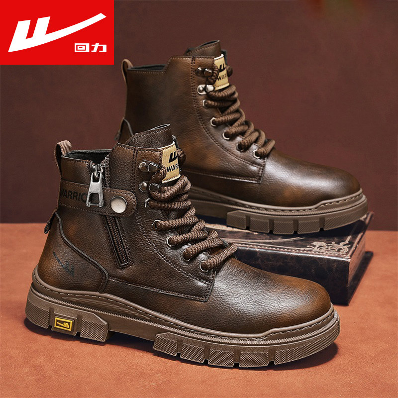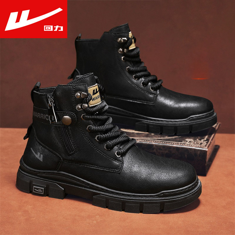 回力男鞋冬季英伦风休闲防滑工装皮鞋高帮马丁靴中帮复古机车皮靴