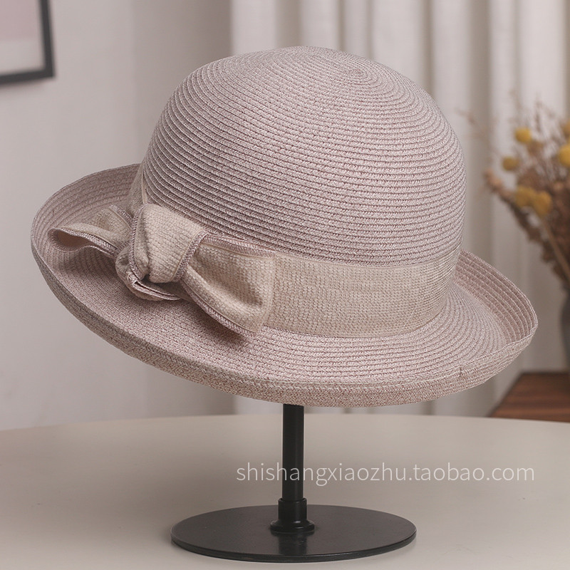 法式优雅遮阳草帽女时尚名媛风卷边礼帽夏季出游防晒蝴蝶结渔夫帽