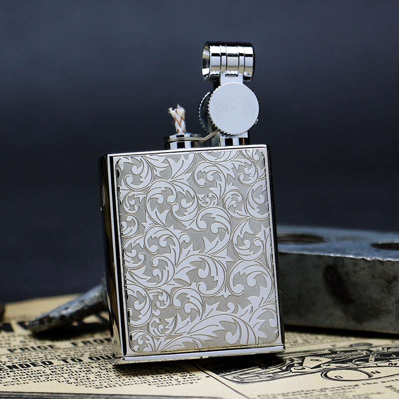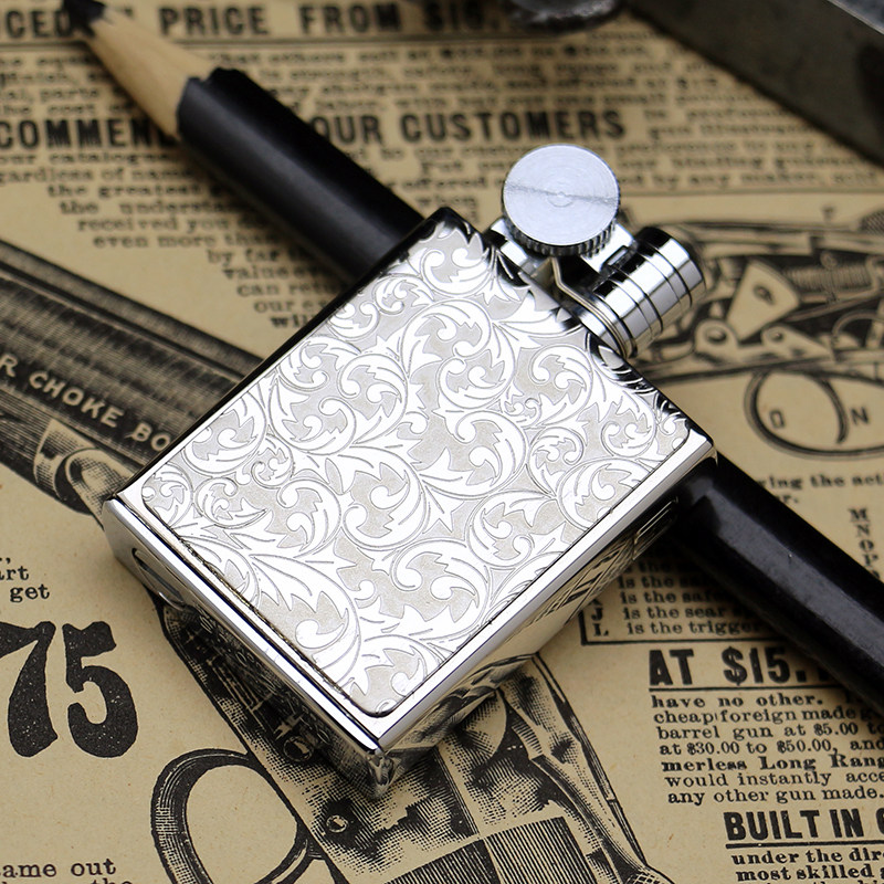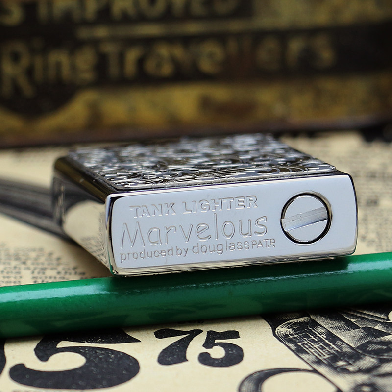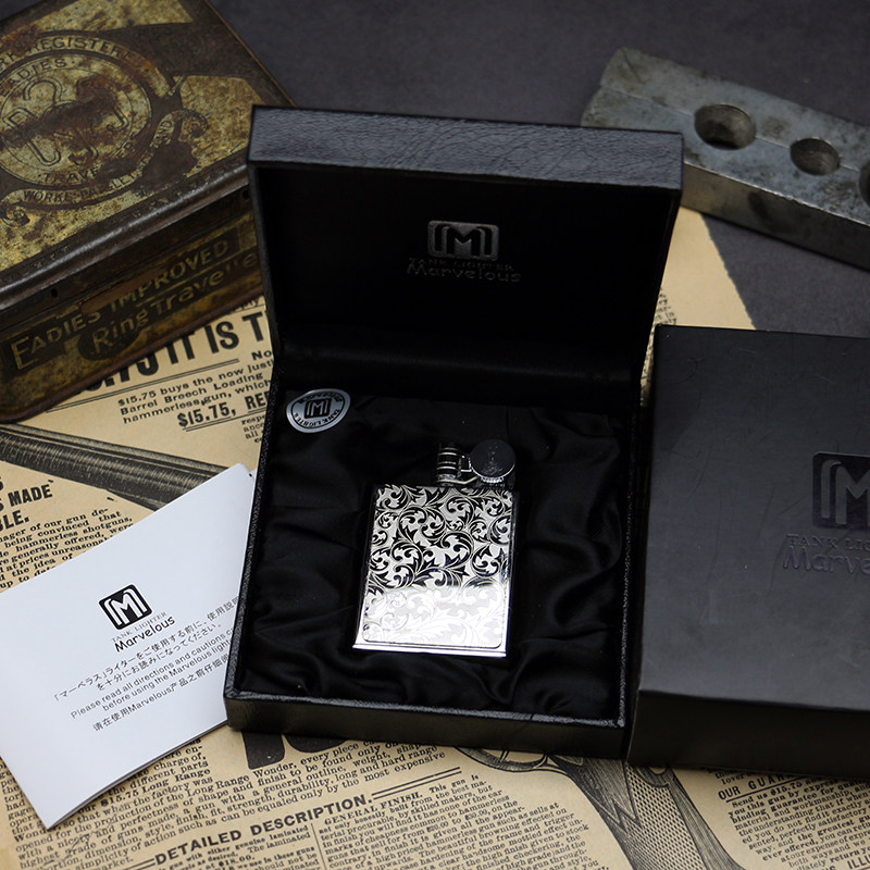 日本进口Marvelous玛乐思纯铜煤油打火机银色镜面双面唐草贴章