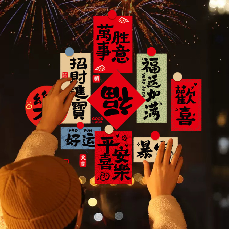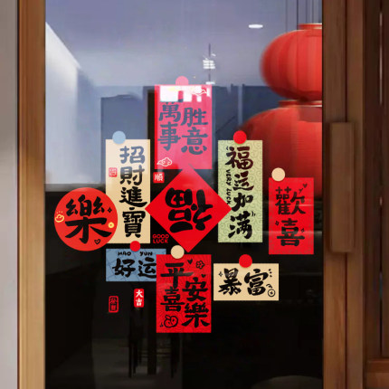 2026新年装饰贴纸春节玻璃静电贴过年布置橱窗福字门贴挥春窗花纸