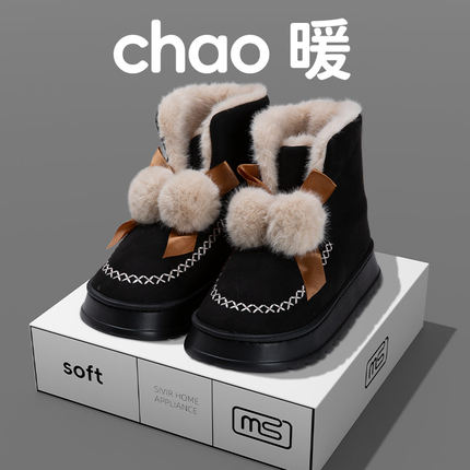 冬季外穿棉拖鞋女高帮棉靴加绒加厚底棉鞋包跟增高新款休闲小香风