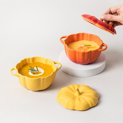 宝宝婴儿辅食双耳带盖南瓜蒸蛋碗