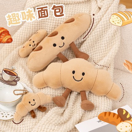 可爱面包抱枕毛绒趣味法棍玩具牛角包挂件陪睡觉公仔宿舍床头靠枕