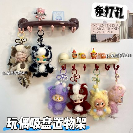 马力全开玩偶置物架盲盒挂件收纳展示架手办吸盘挂钩上墙玩偶娃娃