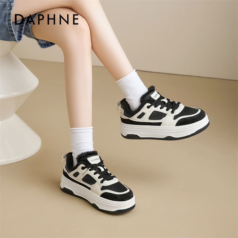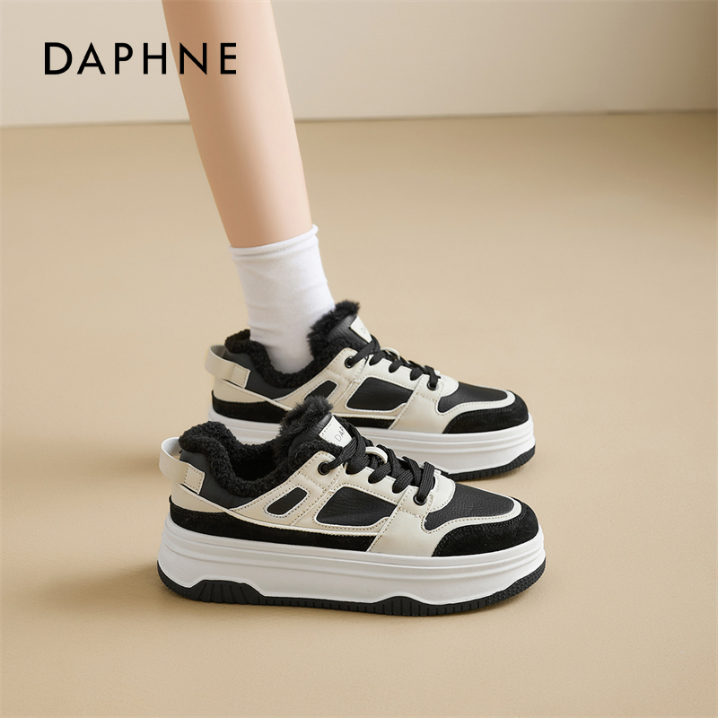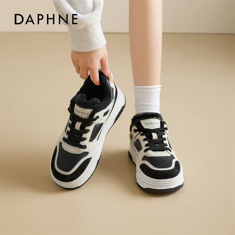 达芙妮加绒板鞋女鞋秋冬季棉鞋2025新款保暖雪地靴运动厚底德训鞋
