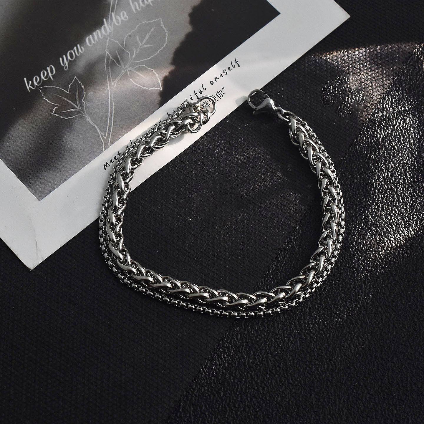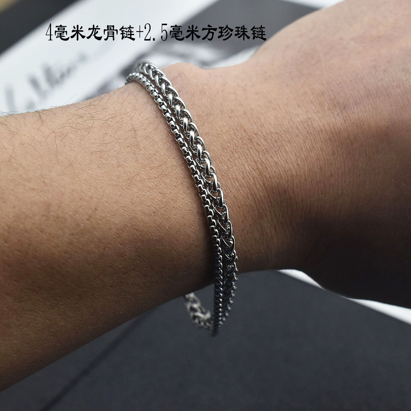 钛钢手链男女通用多层编织链条防水不褪色时尚个性情侣手链百搭