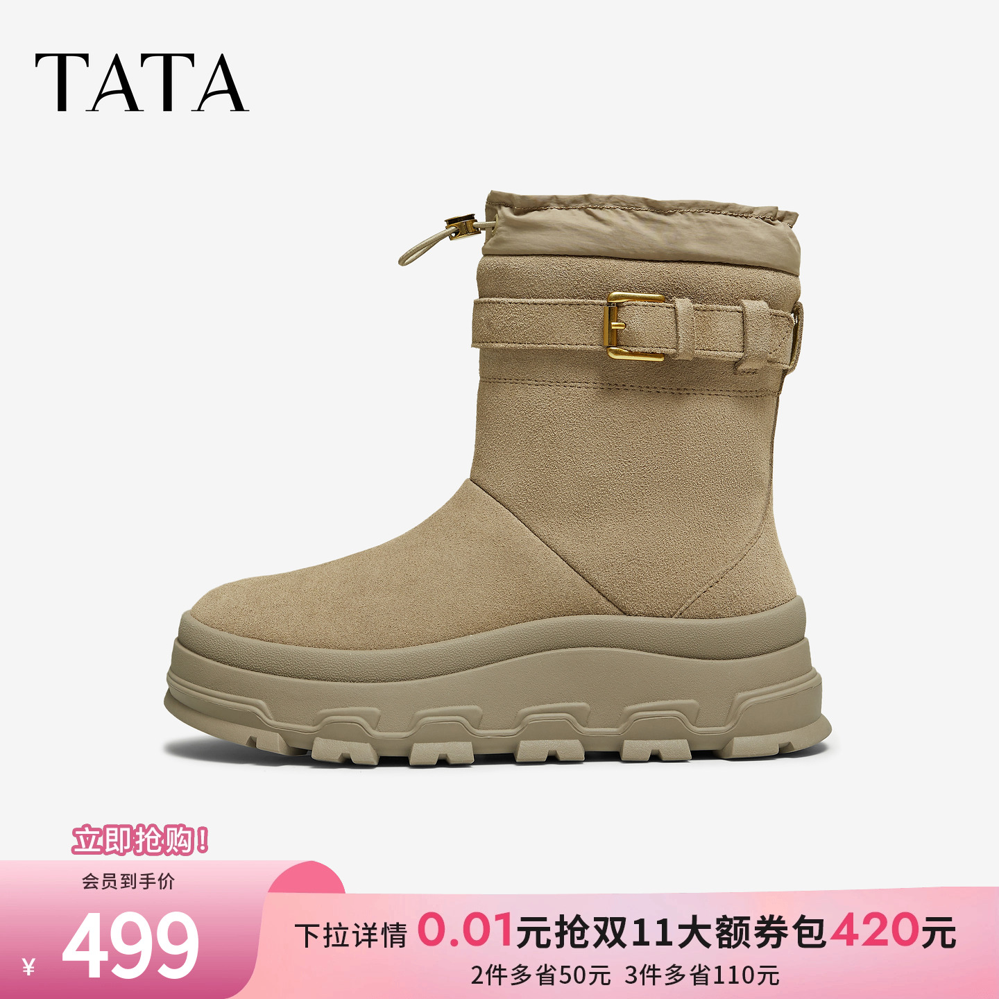 TATA他她雪地靴子冬季鞋子2025新款加绒女鞋厚底短筒靴CHV01DZ5