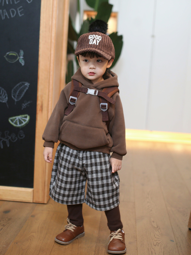 砚台家儿童秋冬纯色男女童连帽卫衣加绒一体绒幼童男孩加厚上衣潮