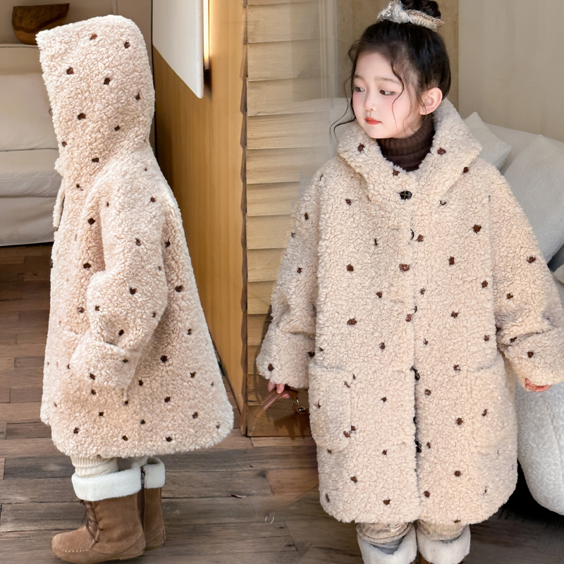 盼盼熊女童冬装外套女孩冬季棉袄棉服加绒加厚儿童冬季中长款大衣