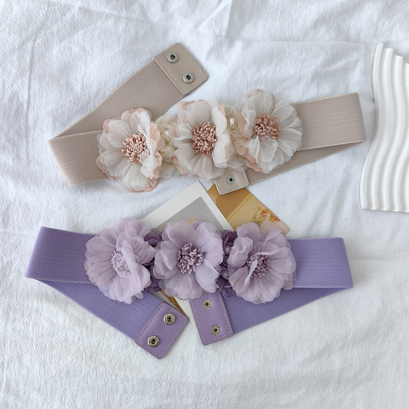 立体花腰带女装饰配连衣裙夏季新款紫色时尚弹力多巴胺粉色腰封宽