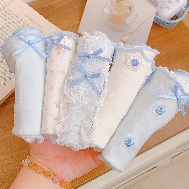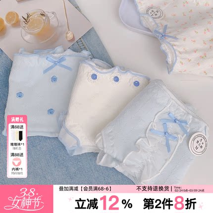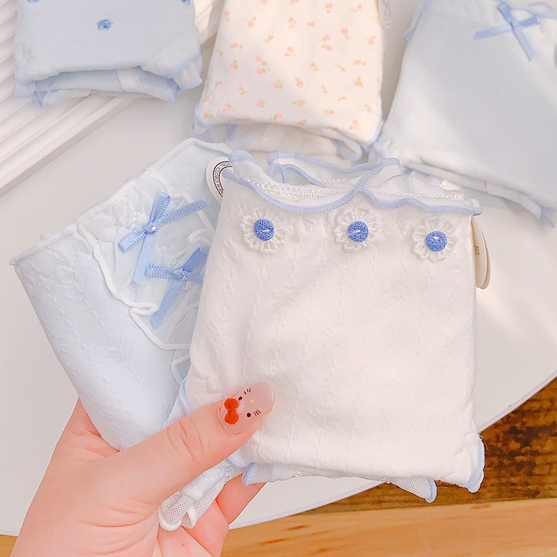 痴痴桃清新蓝10A抑菌纯棉内裤女