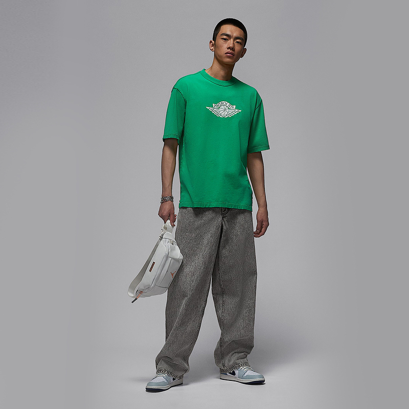 耐克男短袖Jordan夏飞翼水洗印花复古做旧透气针织T恤IB3131-324