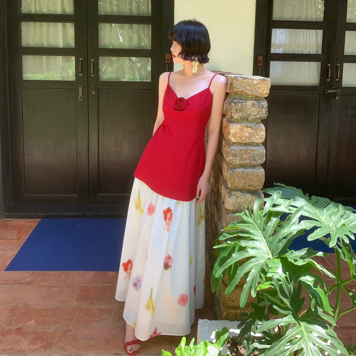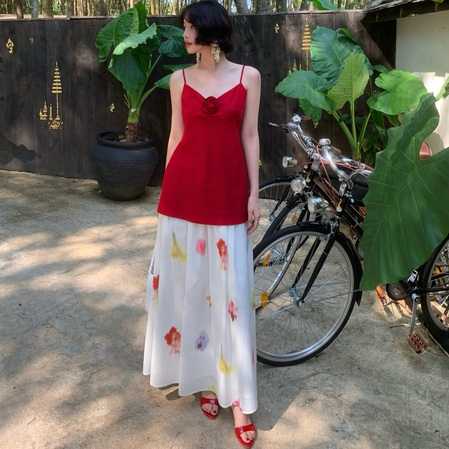 酒午自制新品【彩卉逸影】法式复古油画印花100%棉半身裙大摆伞裙