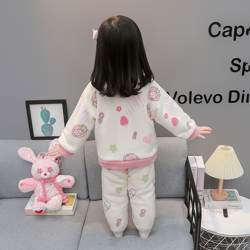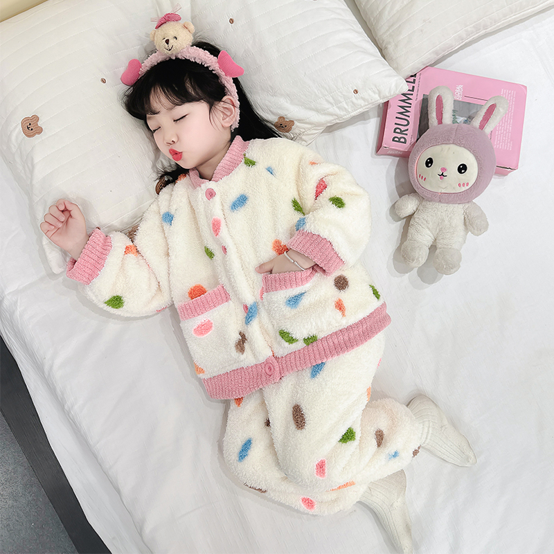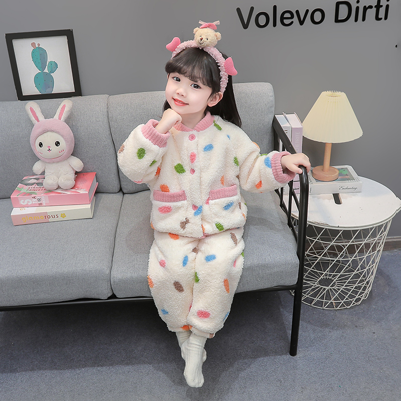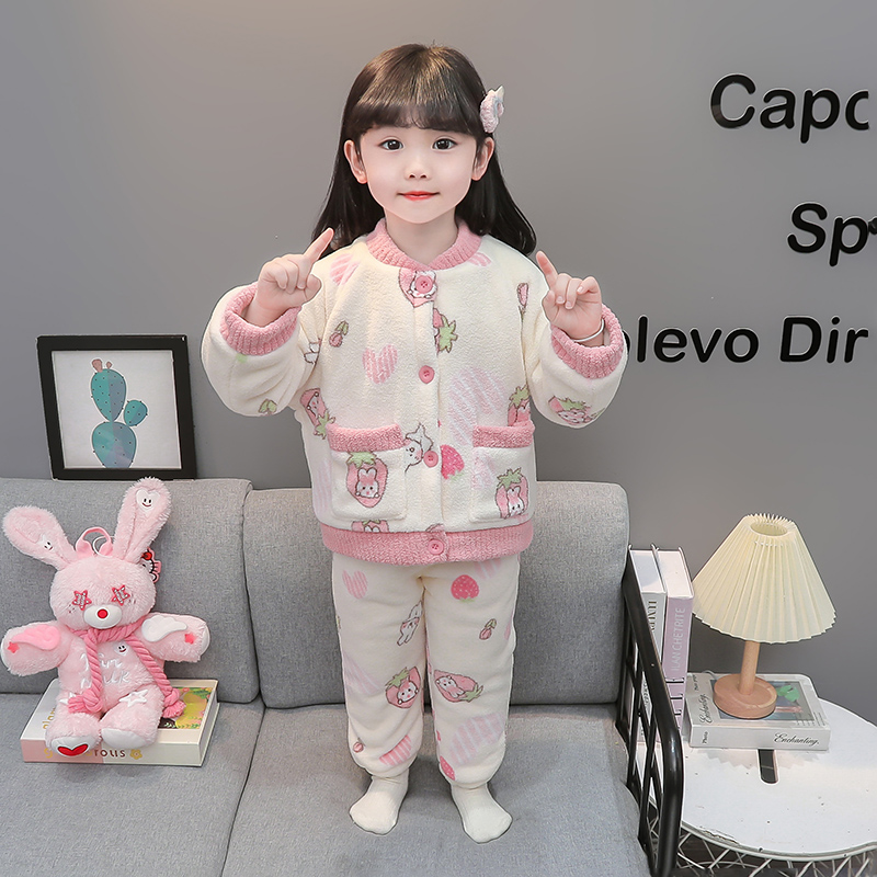 女童加厚睡衣冬季儿童卡通双层保暖开衫家居服套装宝宝法兰绒睡衣
