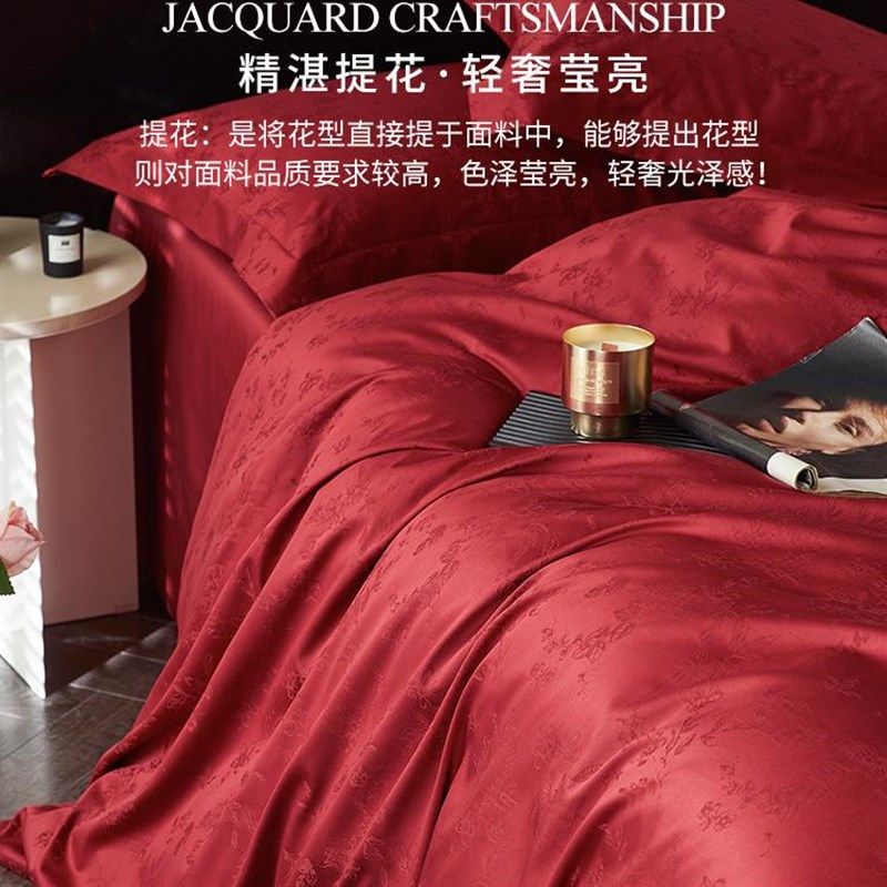 结婚床单四件套纯棉高级2024年新款红色喜庆新中式秋冬款床上用品