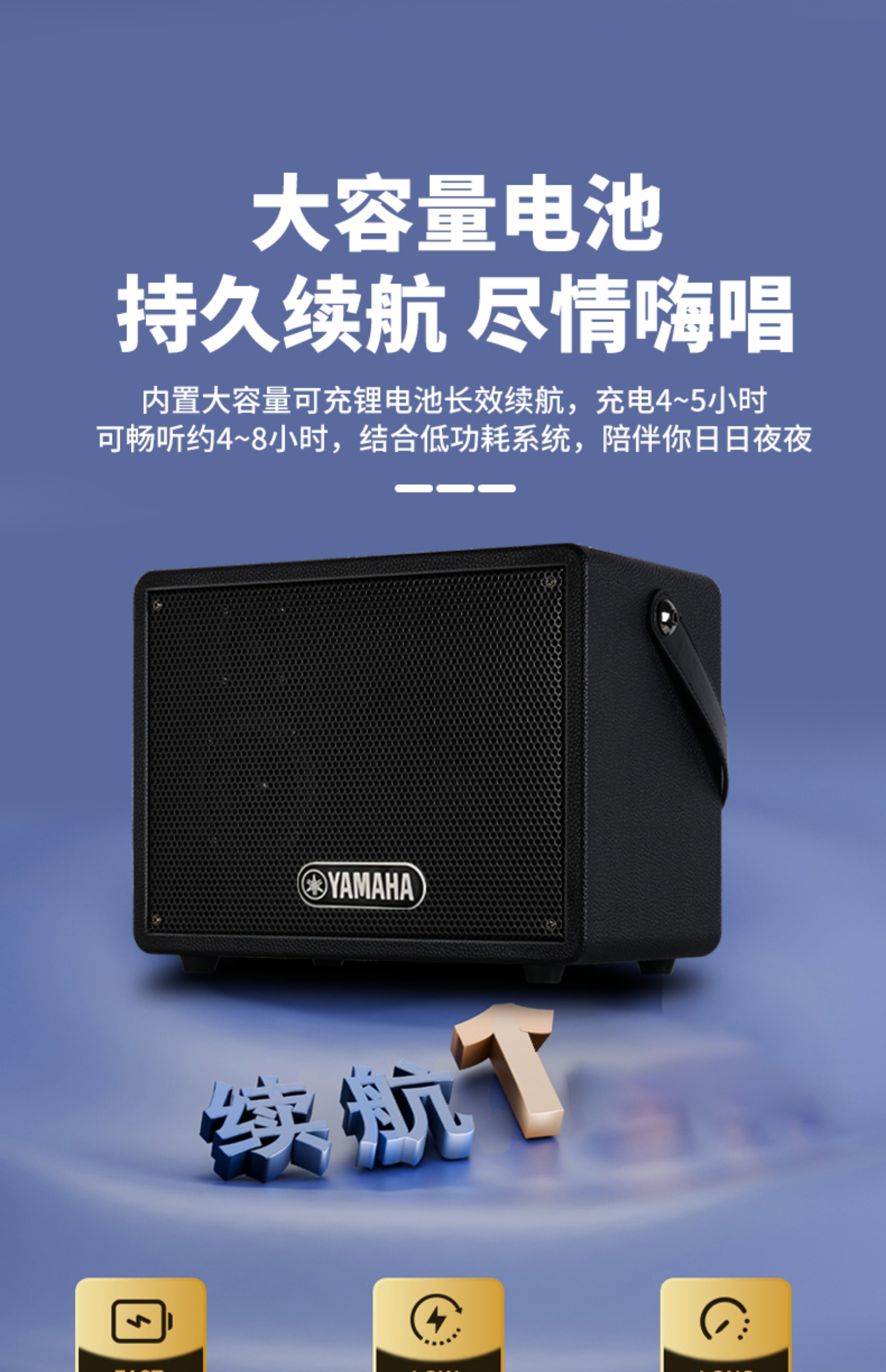 YAMAHA雅马哈吉他音箱 大功率100瓦户外K歌直播充电蓝牙便携音响