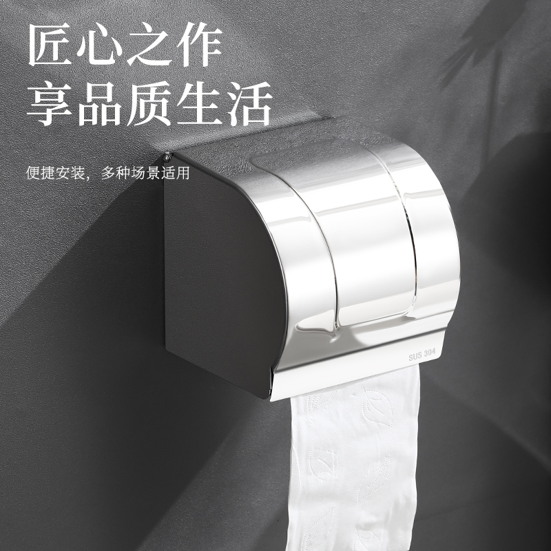 卫生间纸巾盒浴室不锈钢打孔