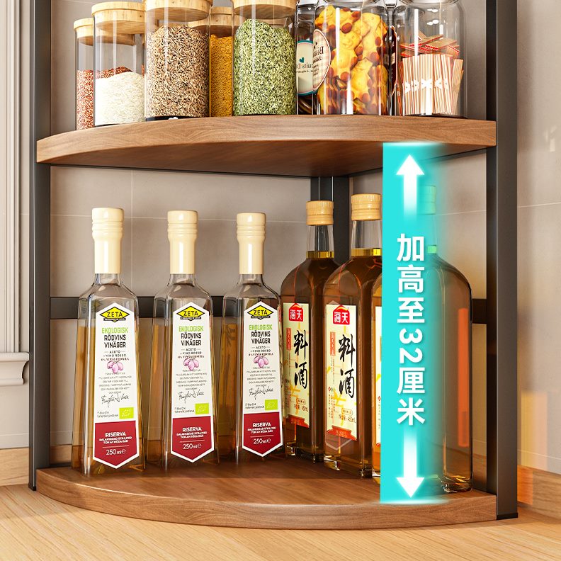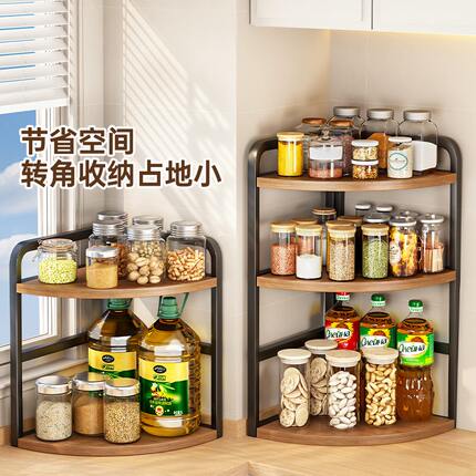 墙角调味料厨房用品收纳落地调料置物架三角层架靠多层子转角落台