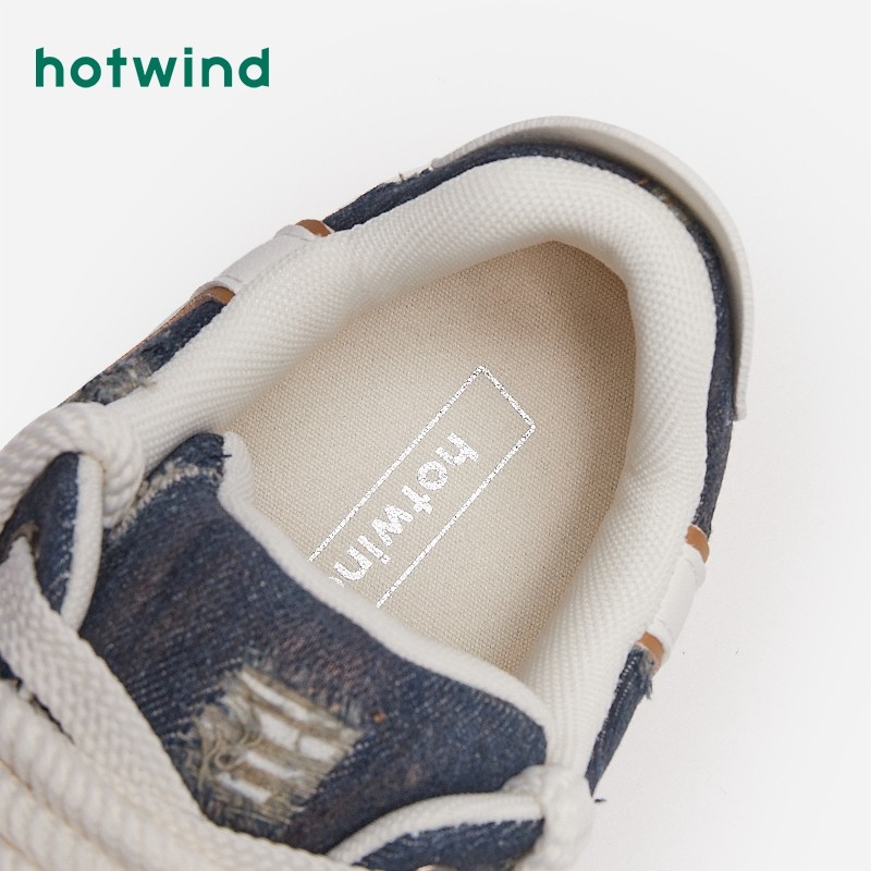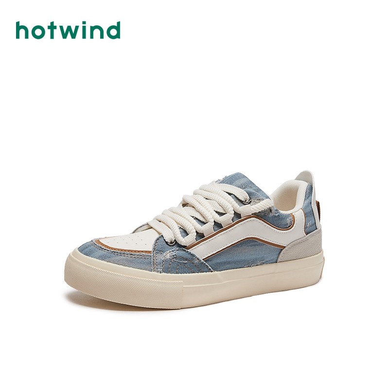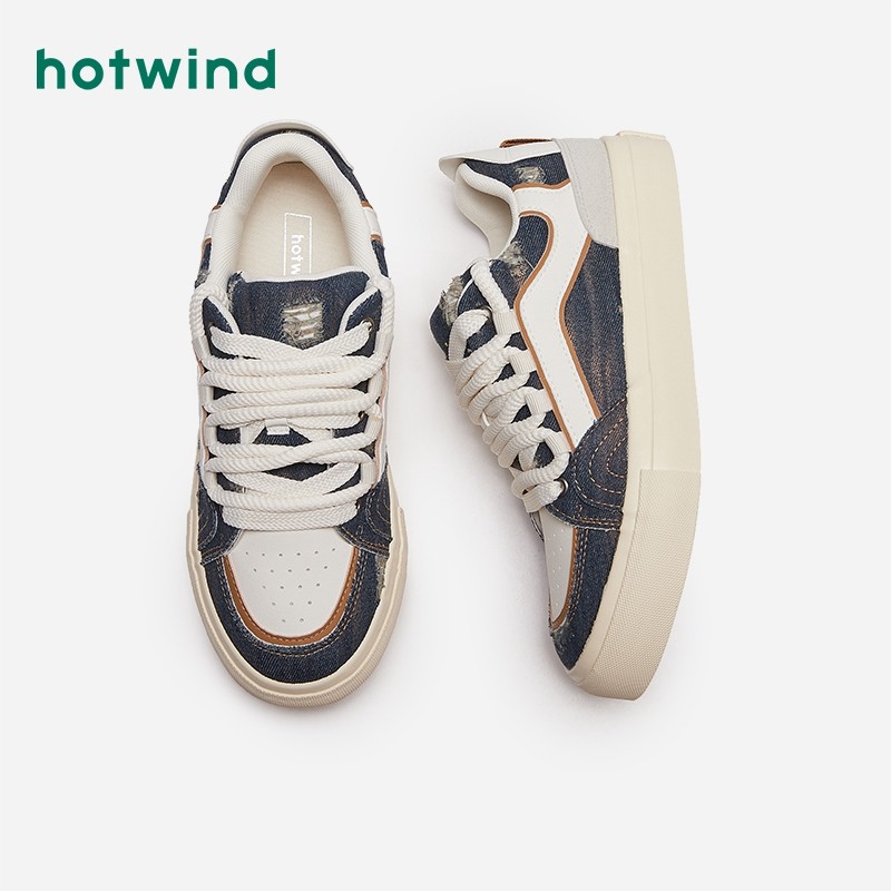 热风秋季新款男士时尚潮流牛仔拼接休闲板鞋圆头百搭小白鞋
