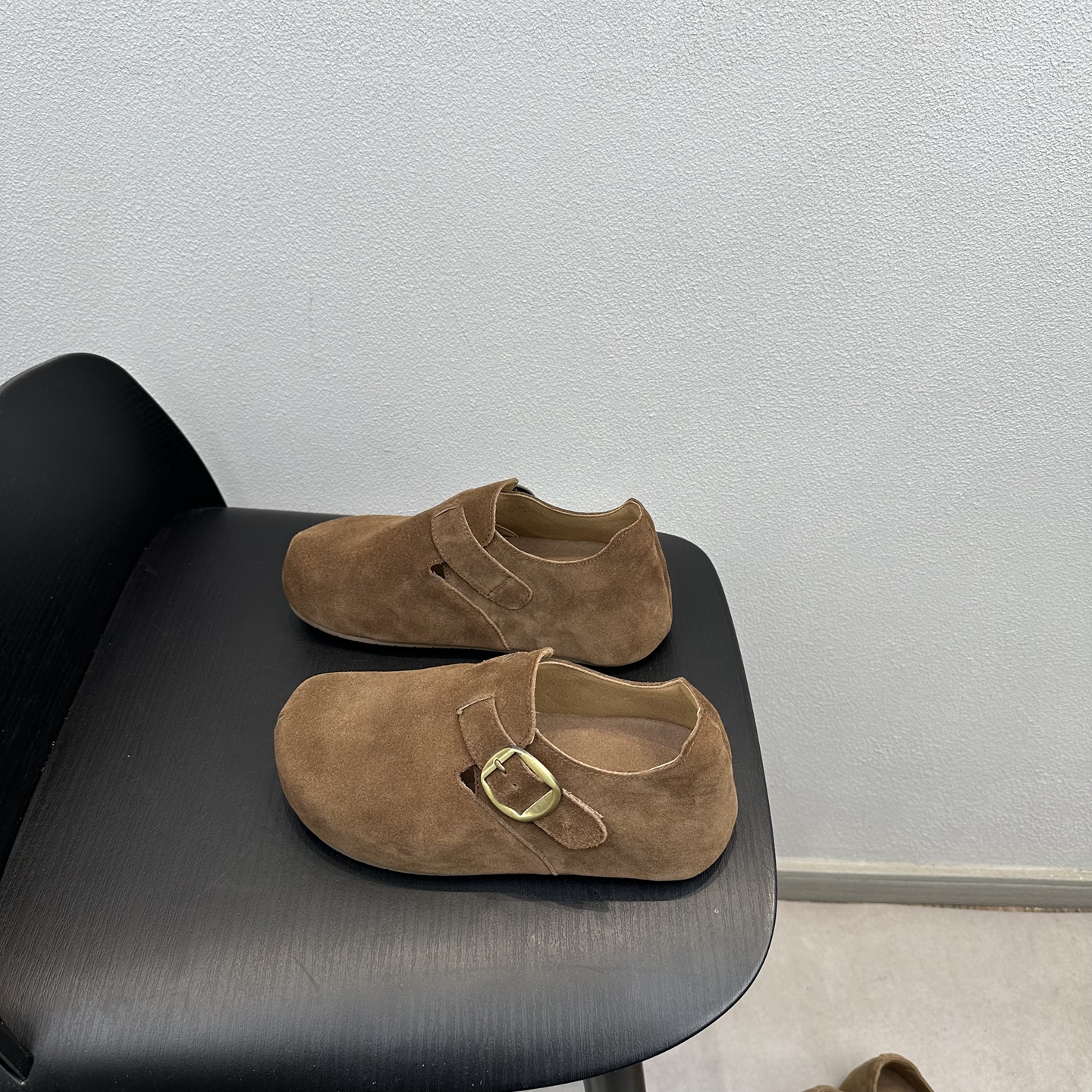 2025新款时尚百搭圆头平底舒适女鞋复古真皮勃肯鞋一脚蹬乐福鞋女