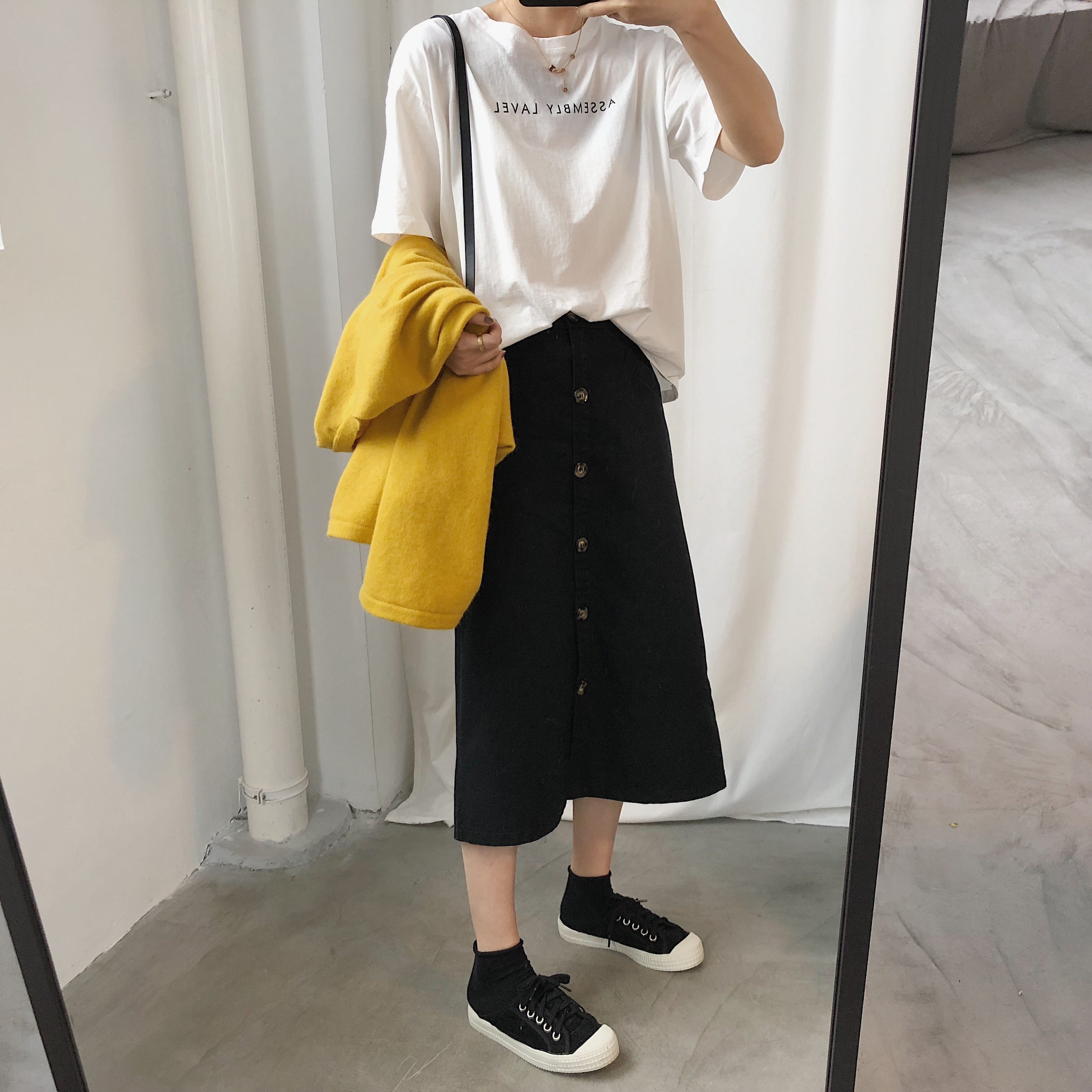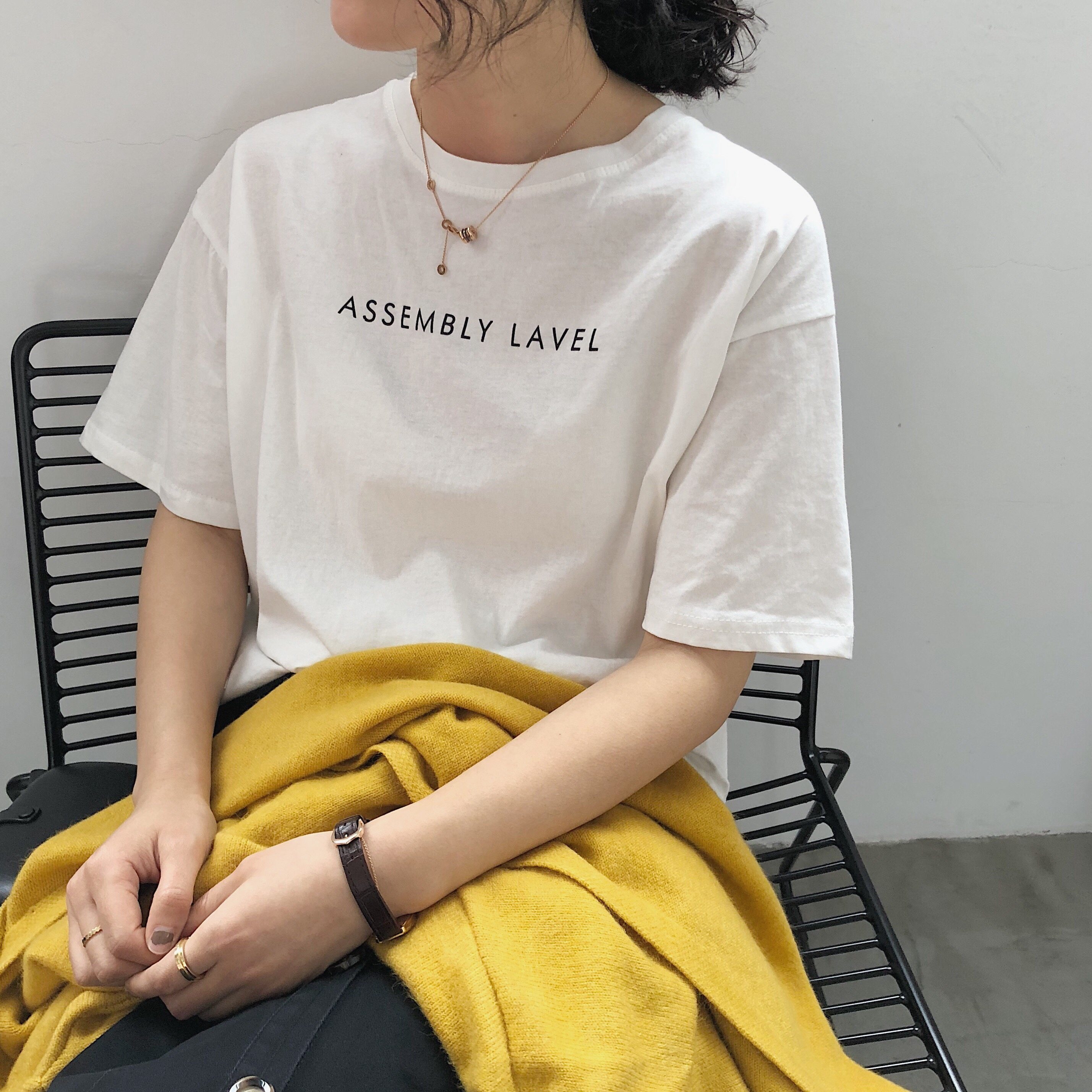 韩版简约百搭小字母圆领短袖白T恤女2019春夏休闲宽松打底衫上衣