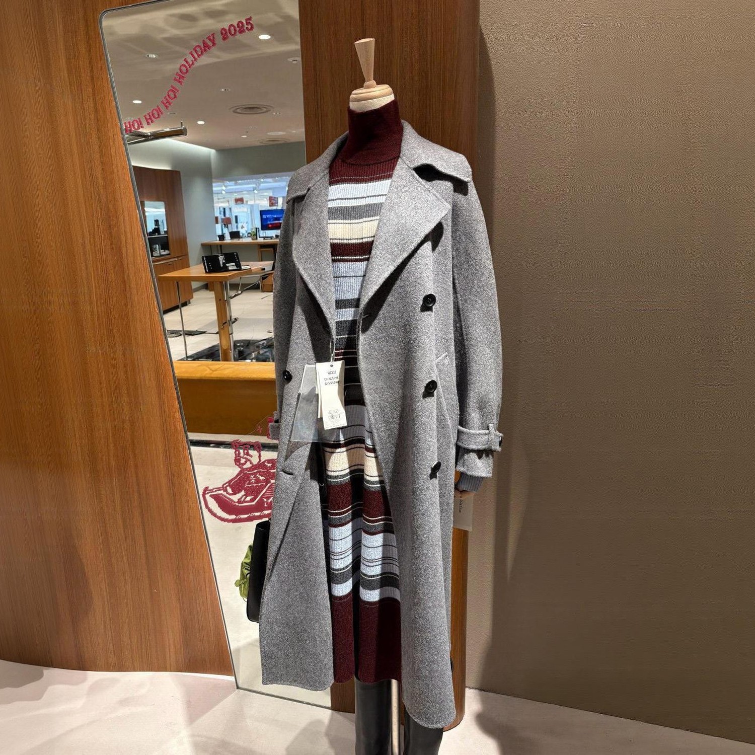 g2160~MO海报款 意大利制75羊毛手缝双面呢翻领腰带长款毛呢外套