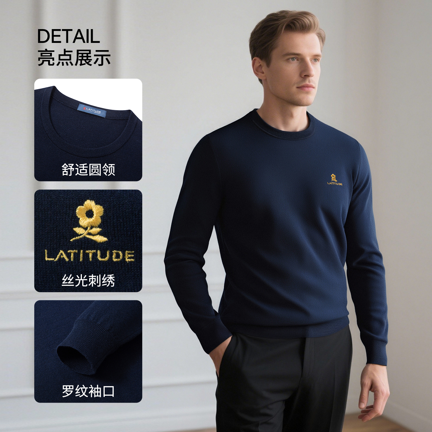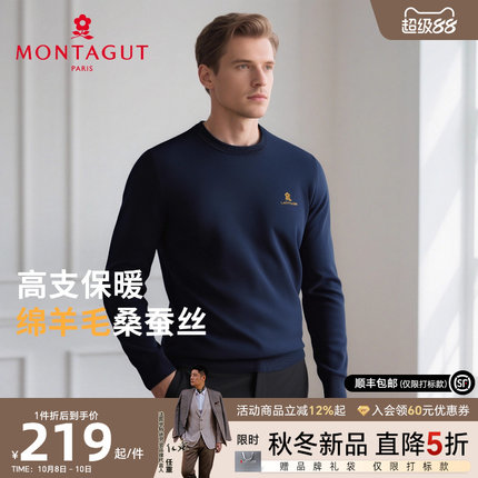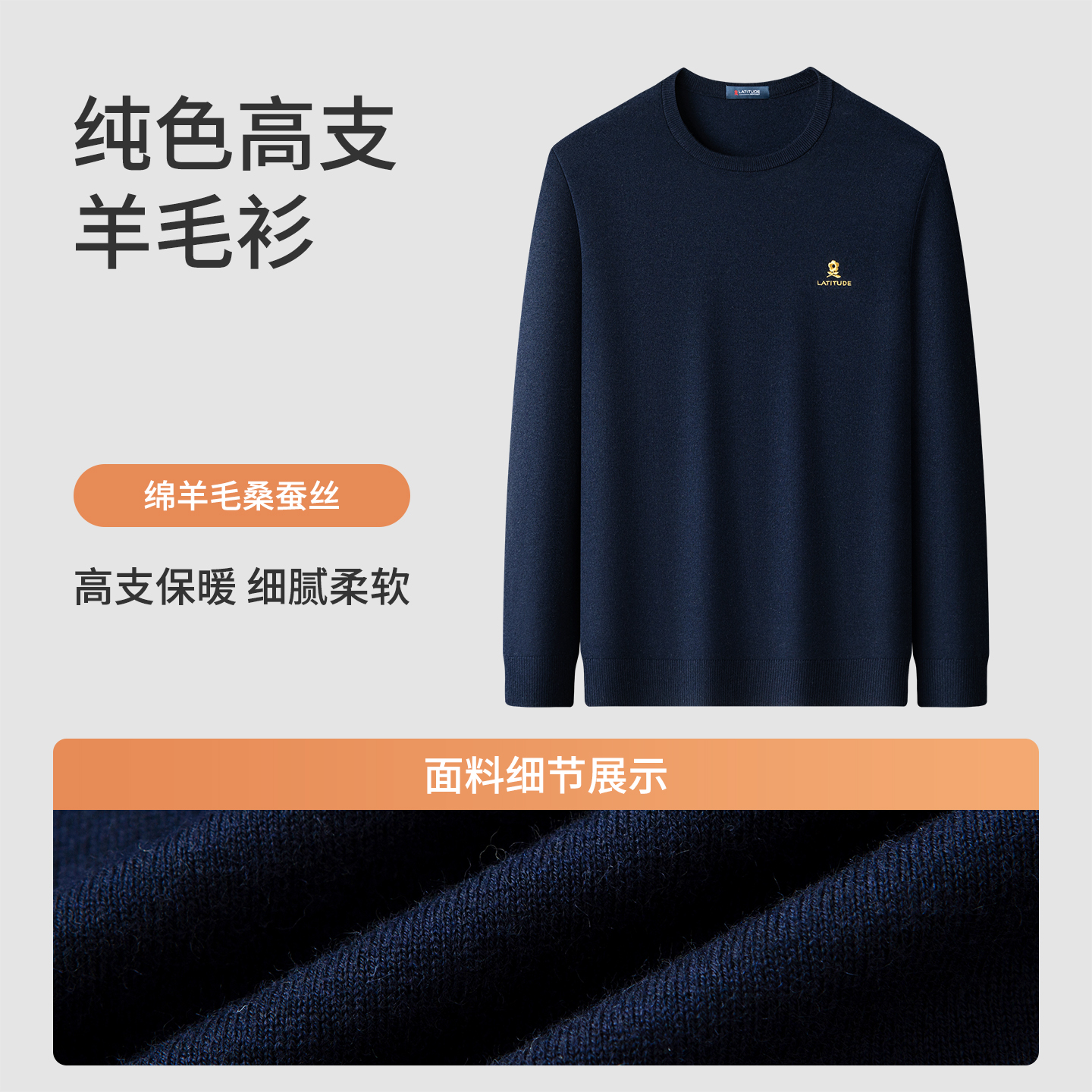 [桑蚕丝绵羊毛]梦特娇秋冬男士针织羊毛衫圆领打底毛衣柔软保暖J