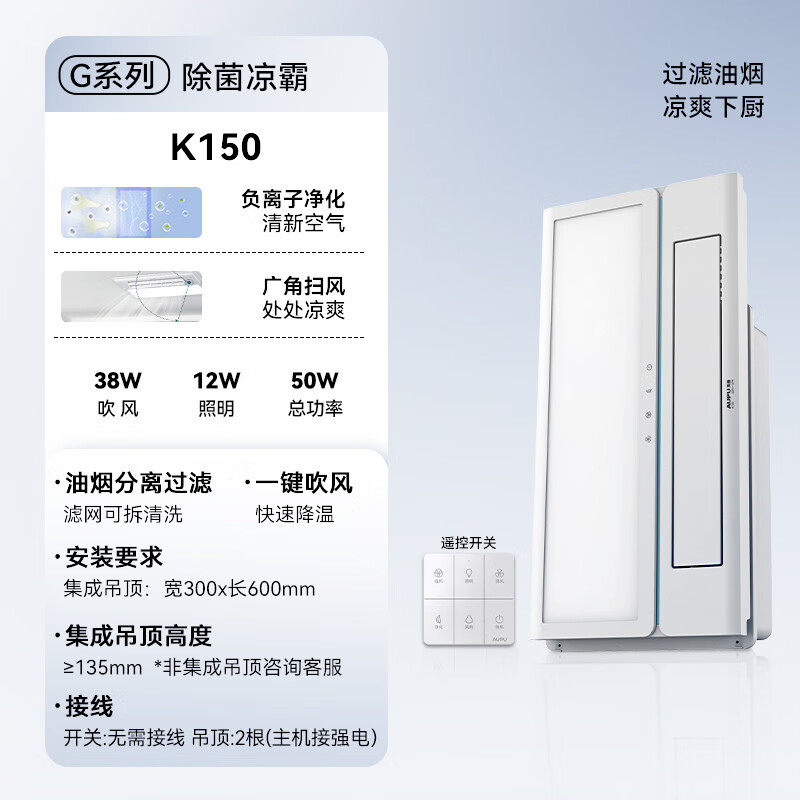 奥普(AUPU)凉霸K150遥控凉霸厨房负离子吹风照明仅适配集成吊顶