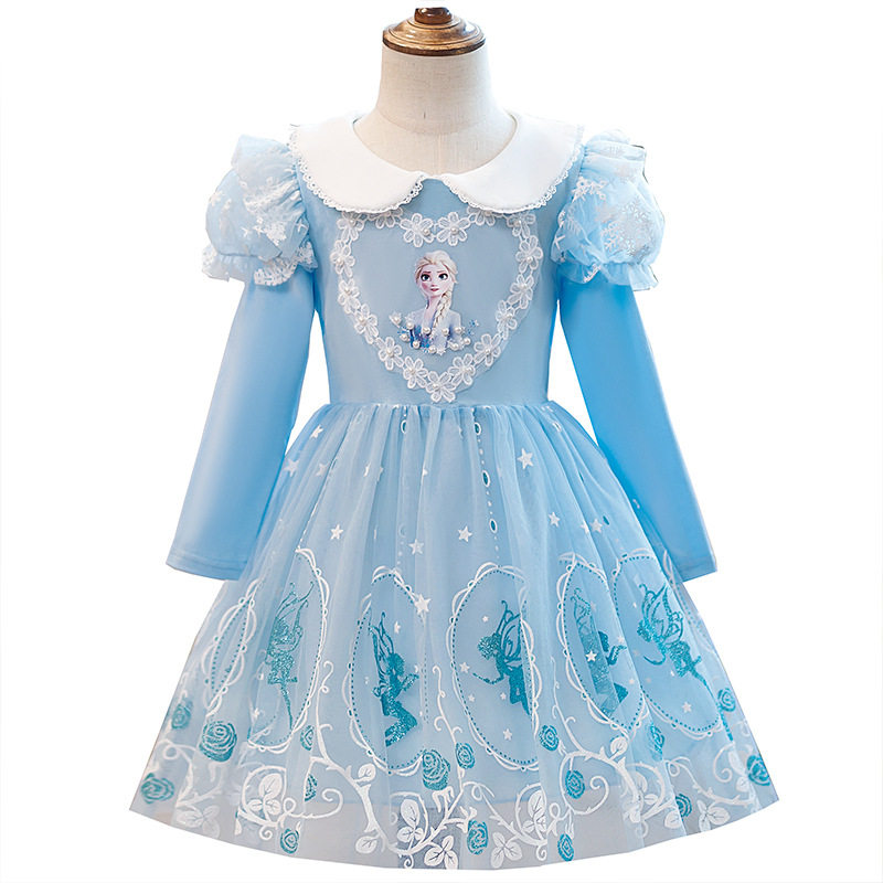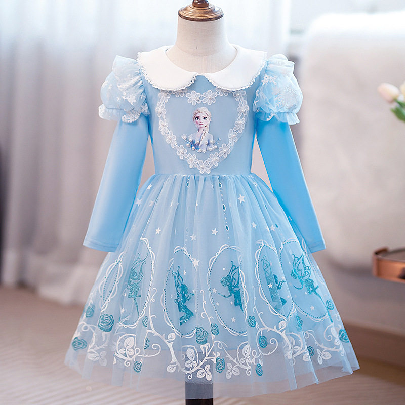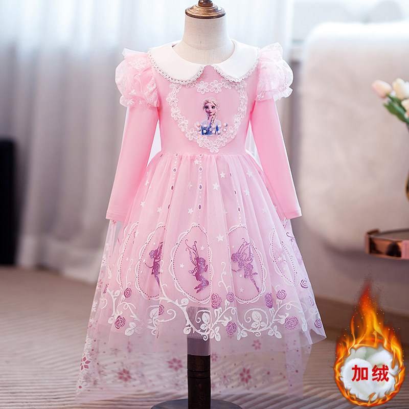女童加绒连衣裙2025新款艾莎公主裙儿童秋冬生日蓬蓬网纱爱莎裙子