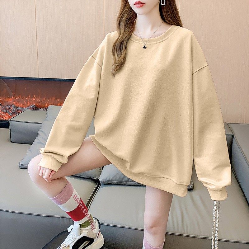 大码纯色圆领卫衣女秋新款