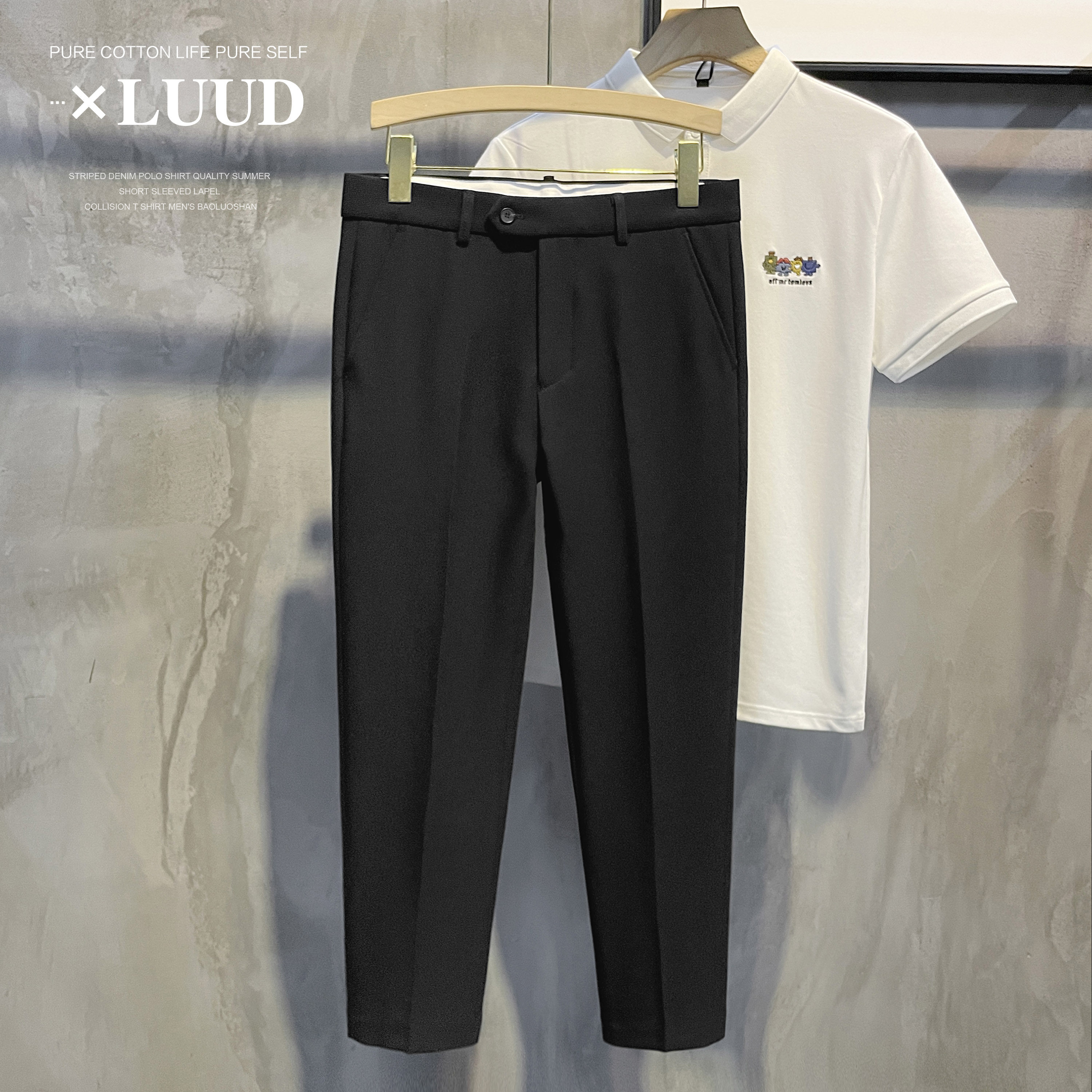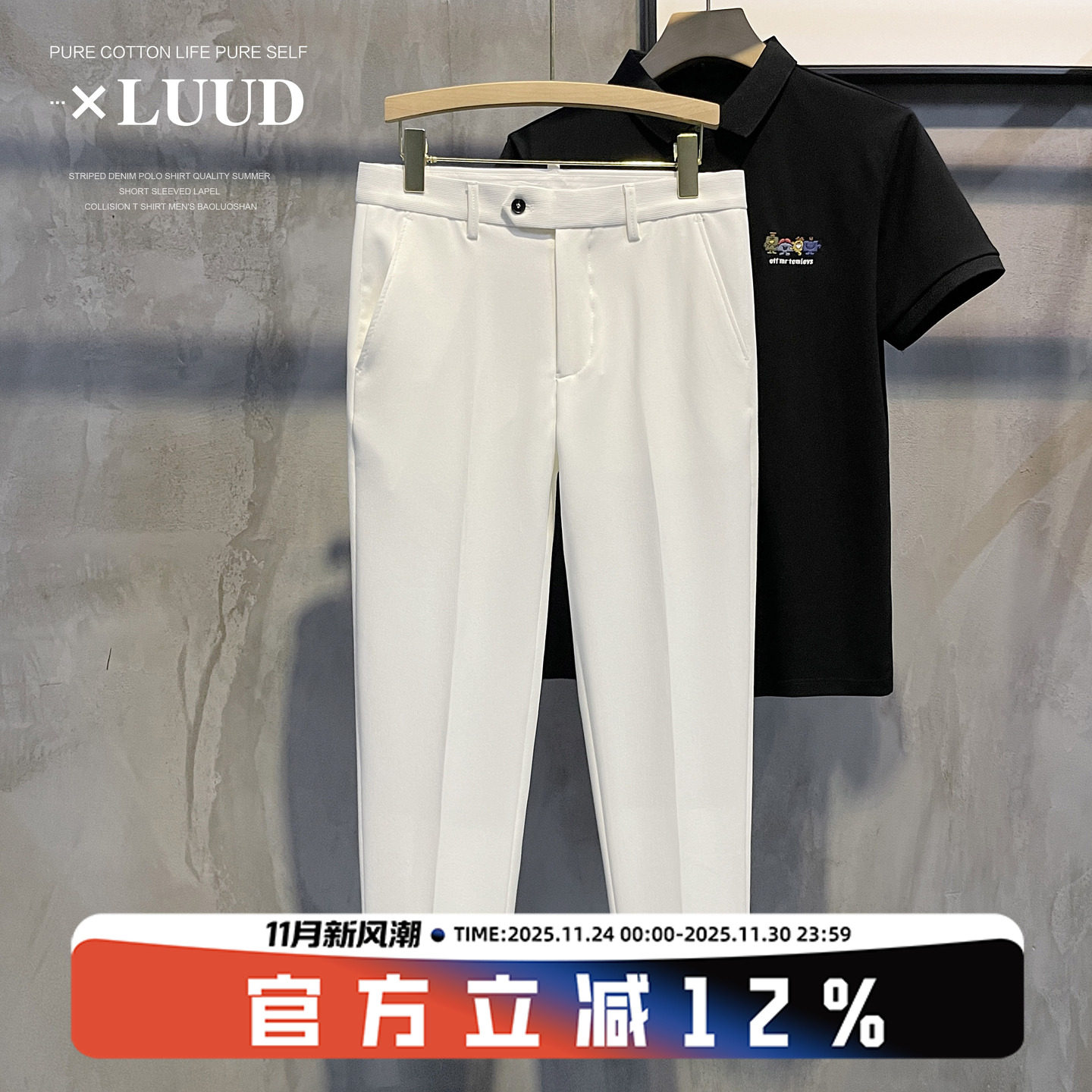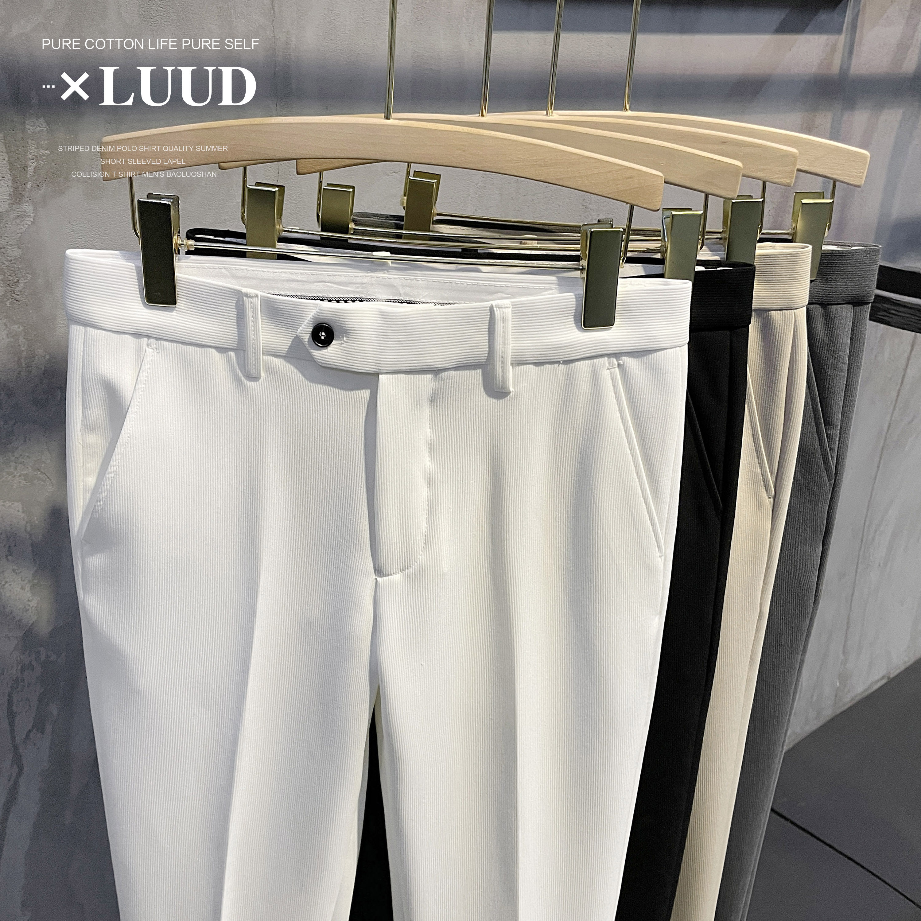 LUUD 免烫时尚都市锥形小白裤法式帅气修身小脚西裤男士9九分裤子