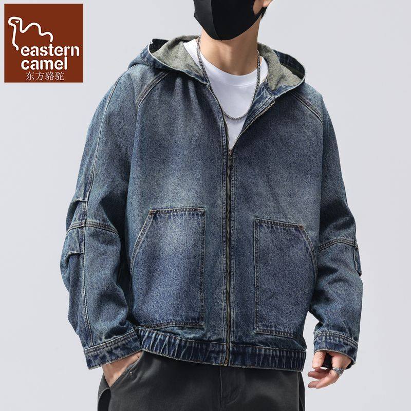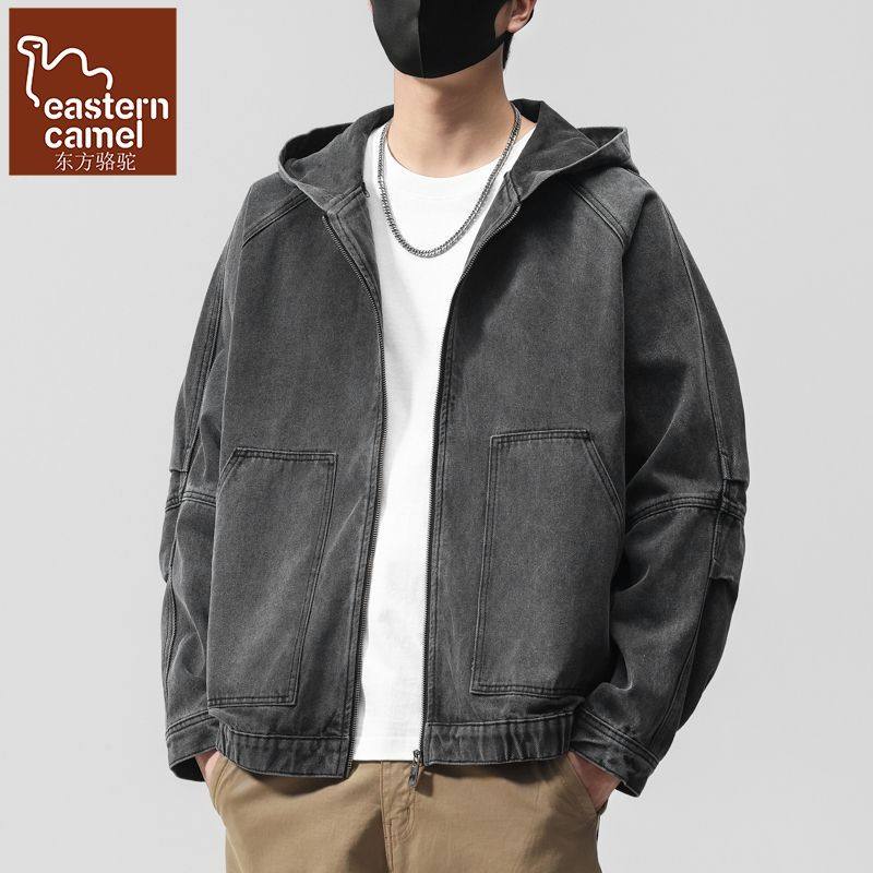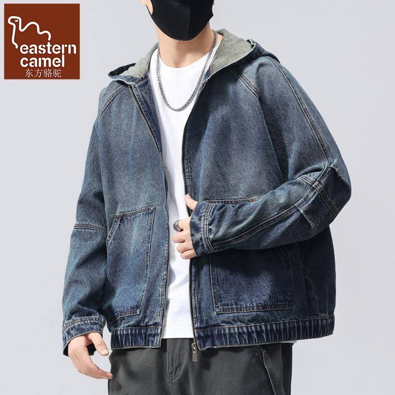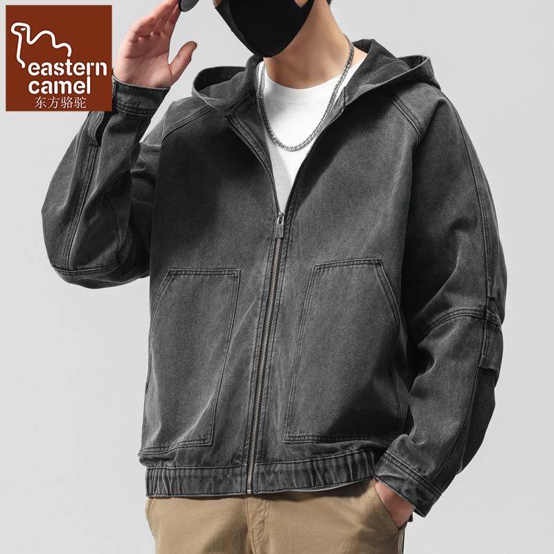 休闲连帽牛仔夹克男士潮流宽松百搭春秋季新款拉链潮牌ins外套男