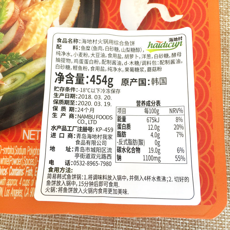 韩国进口冷冻火锅鱼糕454g韩式综合鱼饼串含料包关东煮釜山海鲜饼