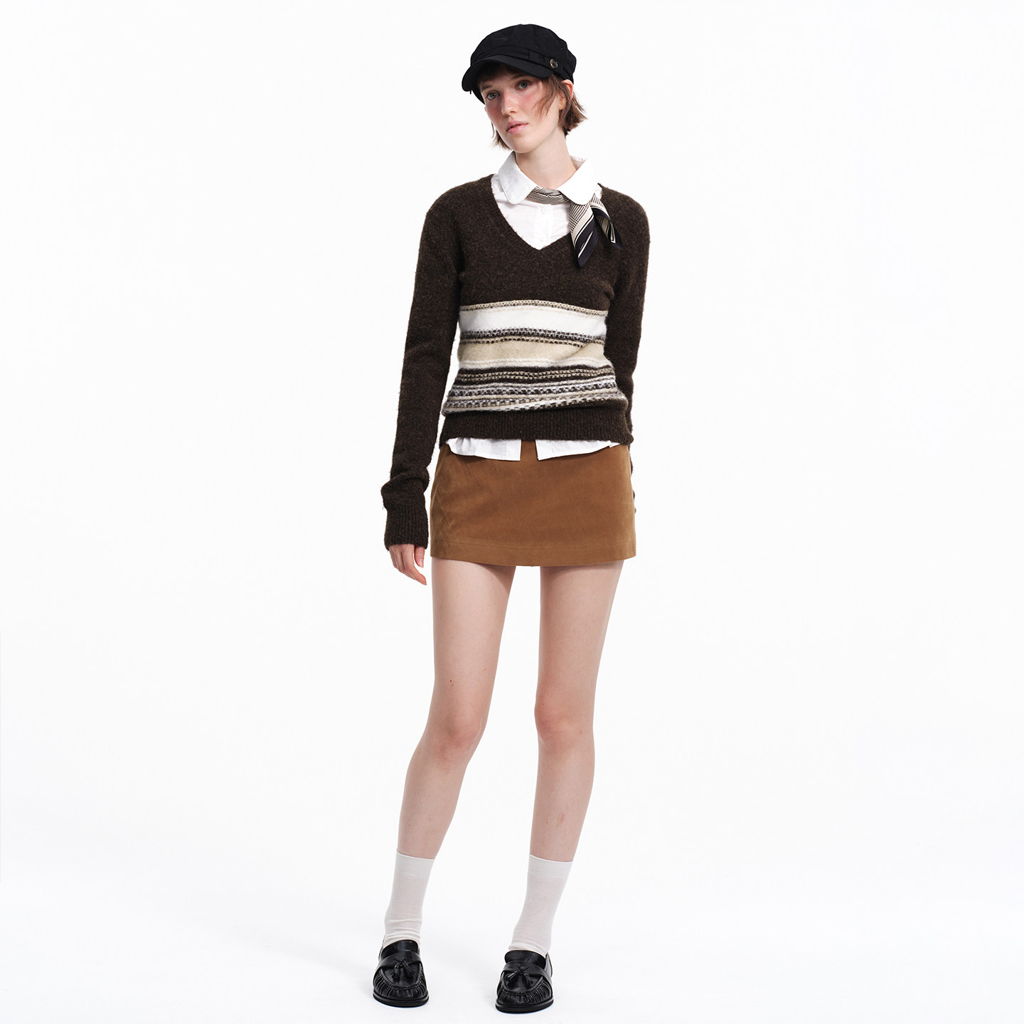 SMIIILE仿麂皮挺阔短款低腰直筒a字半身裙女修身显瘦防走光裤裙