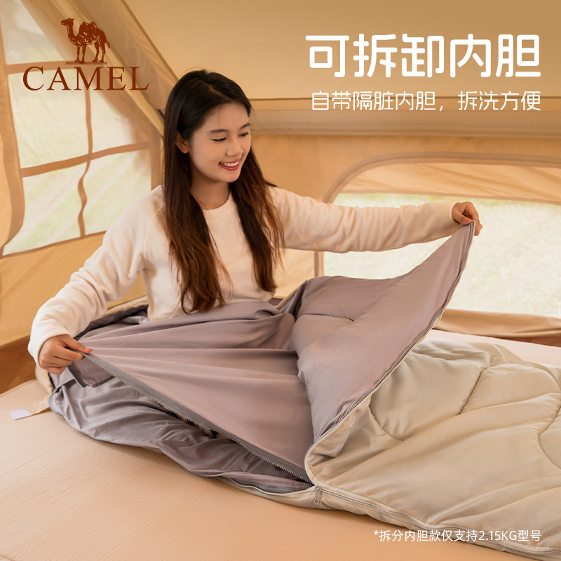 骆驼睡袋四季款四季成人户外露营过夜隔脏午休保暖羽绒棉单人双人