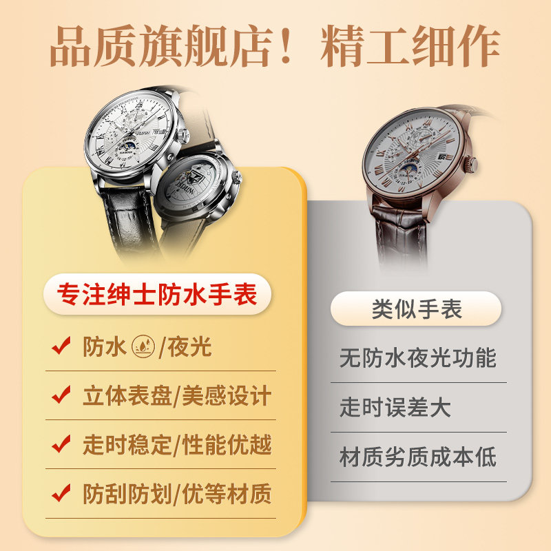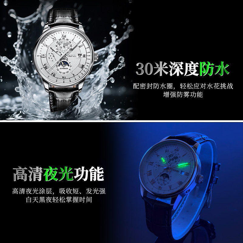 瑞士金仕盾正品男士手表男款机械表全自动多功能商务2025新款男表