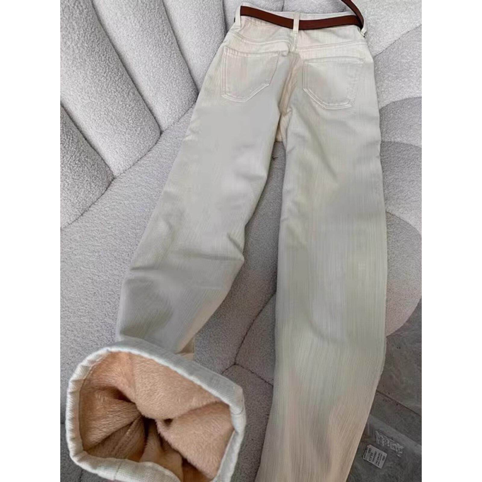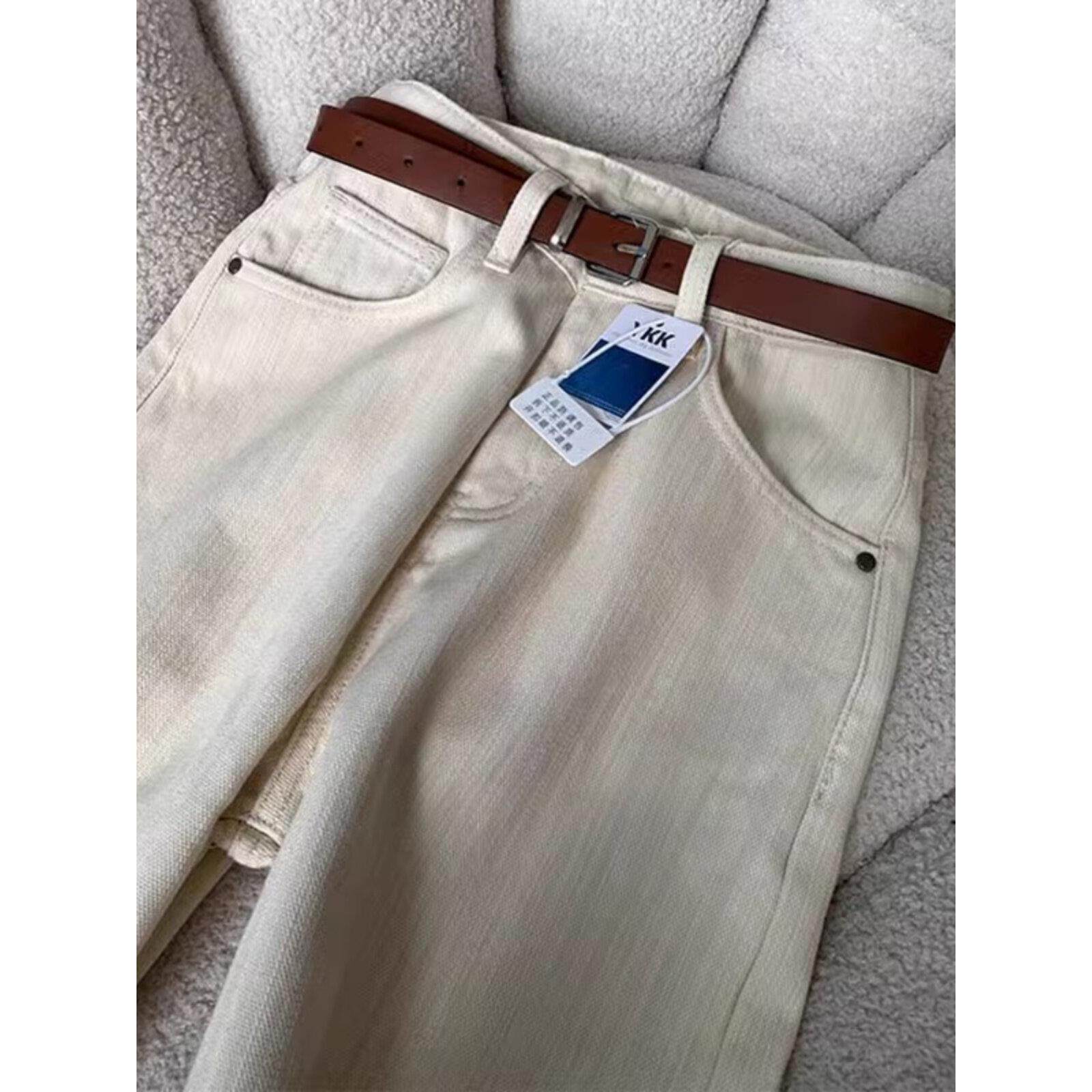 米白色直筒牛仔裤女2025款秋冬新款高腰显瘦垂感窄版阔腿拖地裤