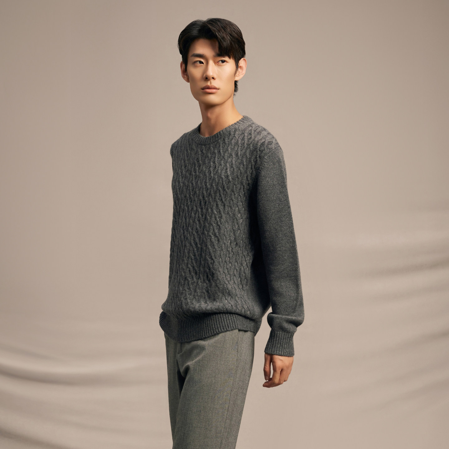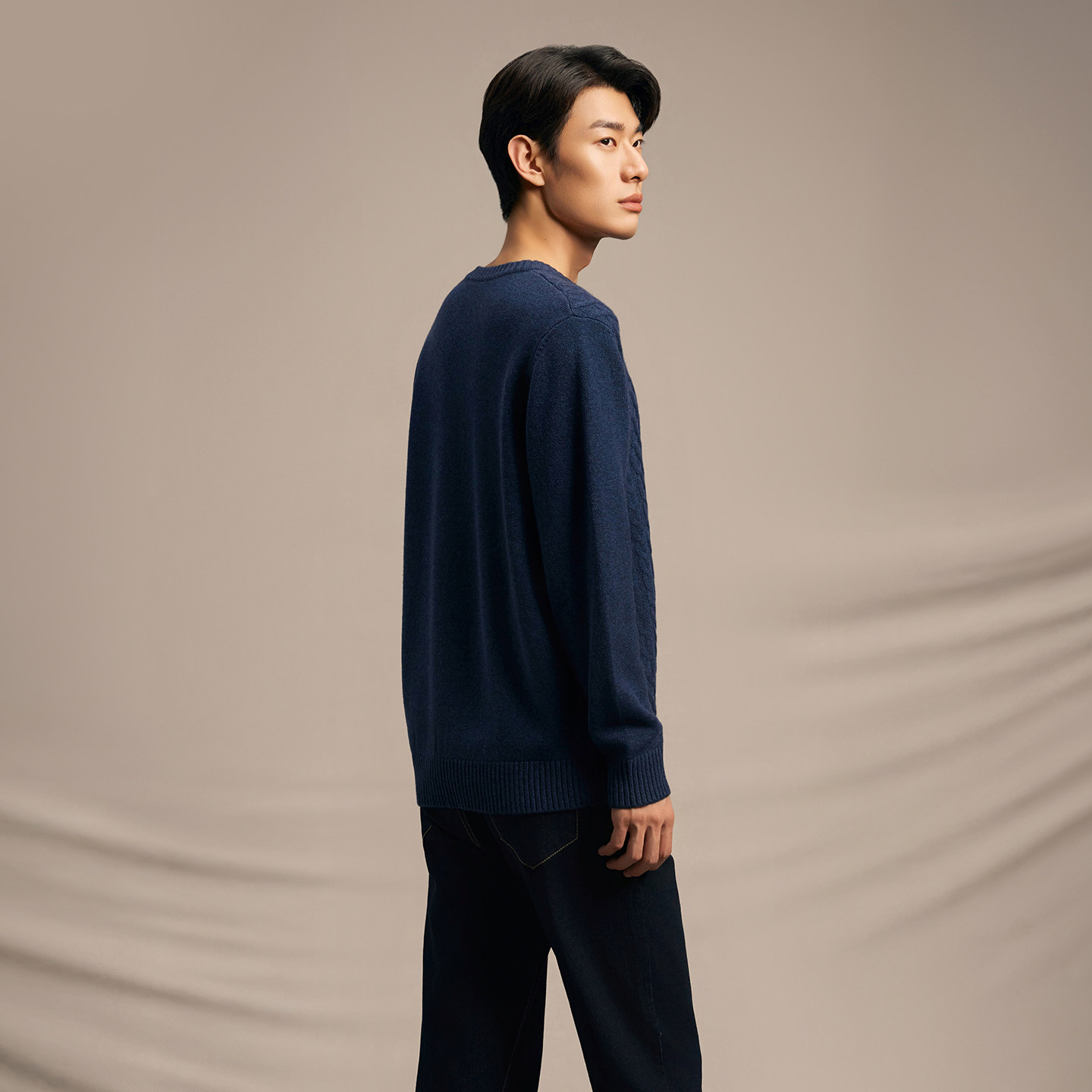 鹿王100%山羊绒衫男圆领绞花编织加厚针织衫毛衣时尚25年秋冬新款
