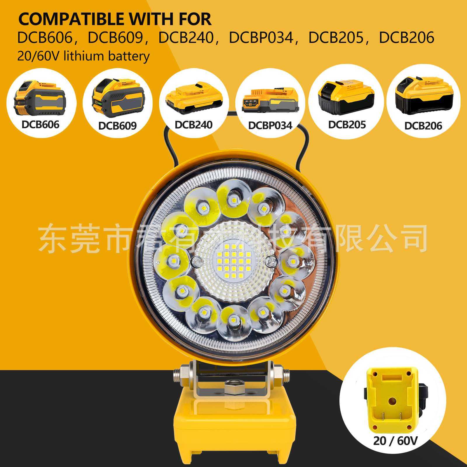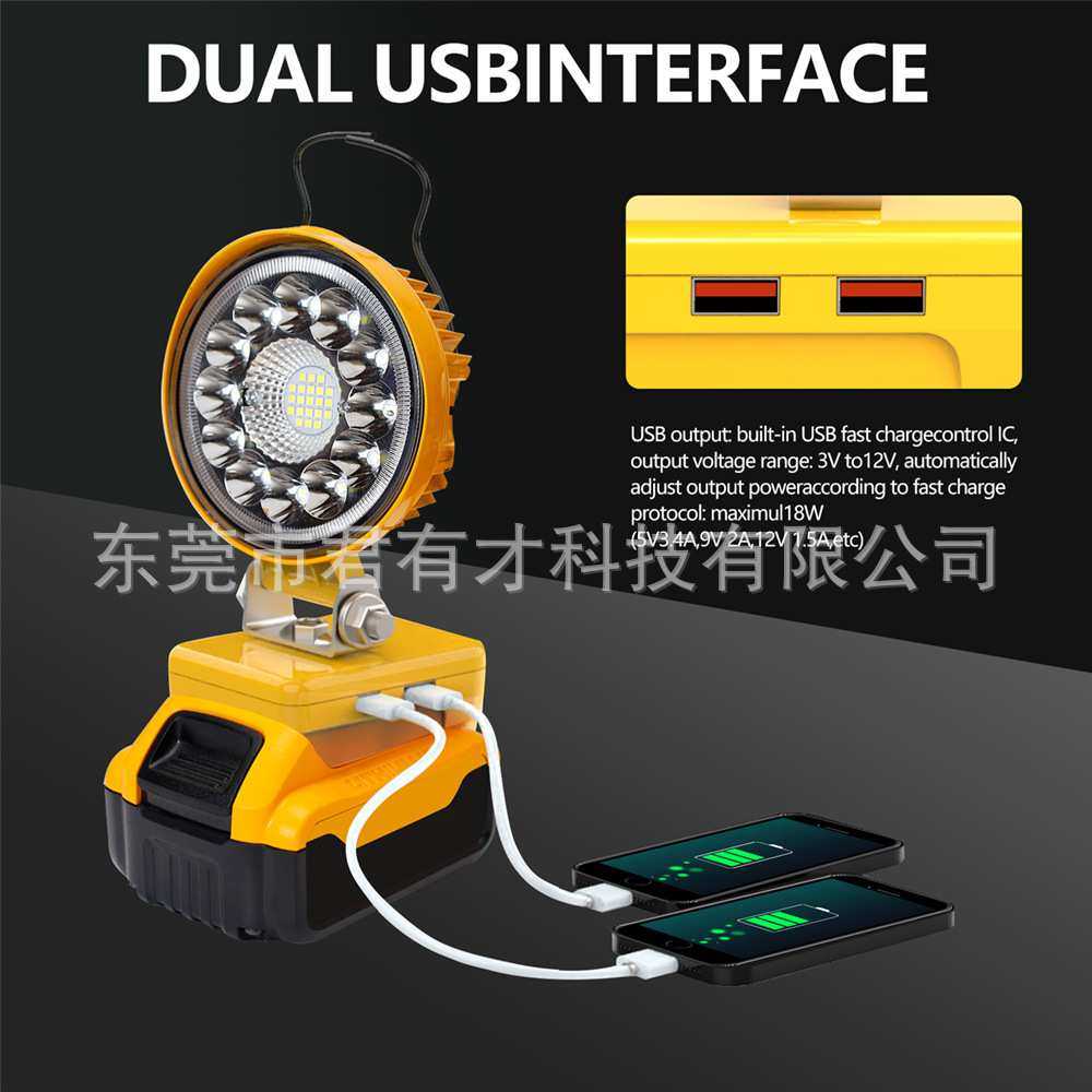 工作灯LED户外工程照明适合DeWalt得伟DCB200锂电池双usb快充提手