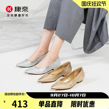 康奈女鞋2025年秋季新款时尚百搭尖头休闲浅口单鞋女通勤鞋平底鞋