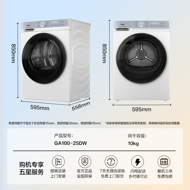 海尔烘干机干衣机家用超薄全自动热泵除菌螨大容量25DW