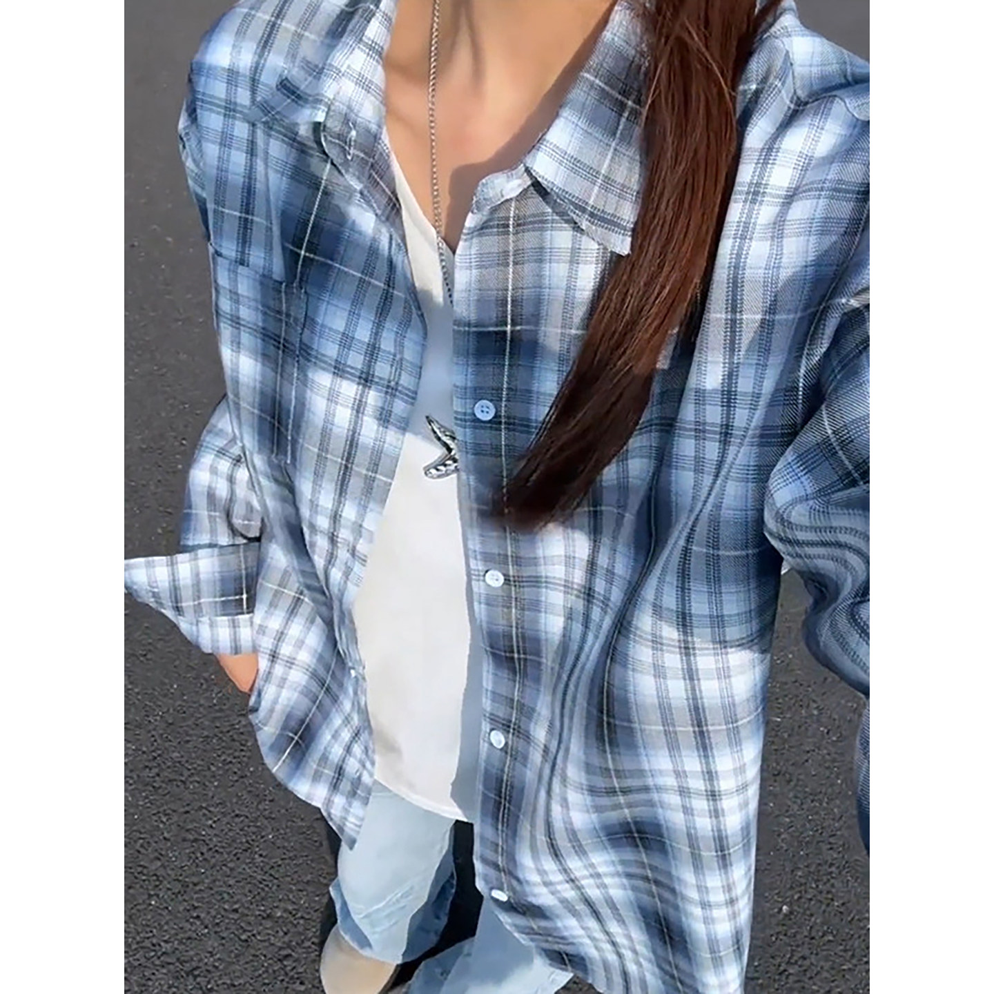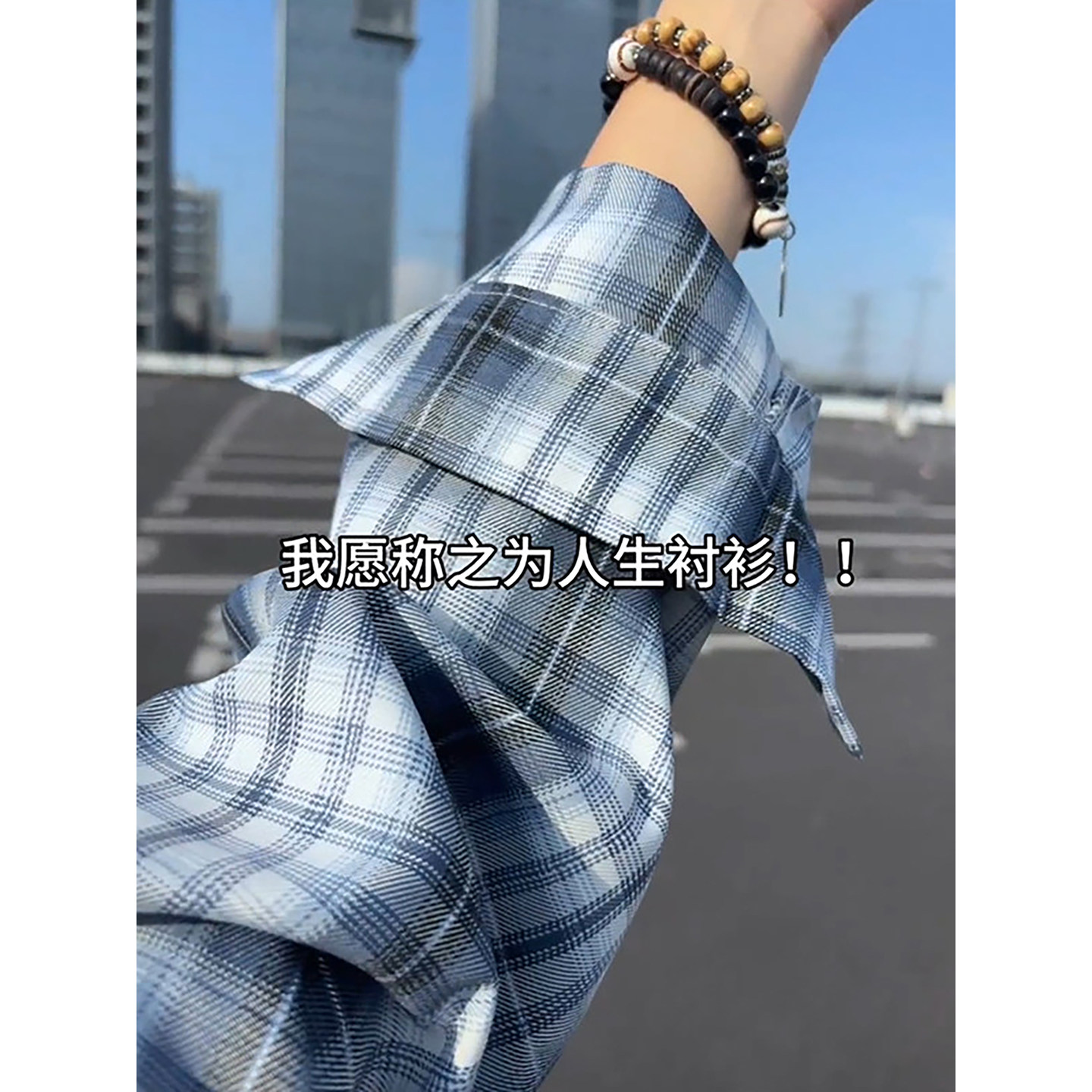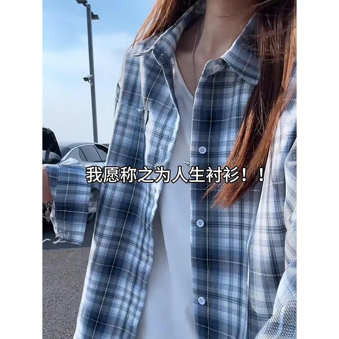 藏青色格子衬衫男女款春季休闲慵懒感长袖衬衣高级感情侣开衫外套