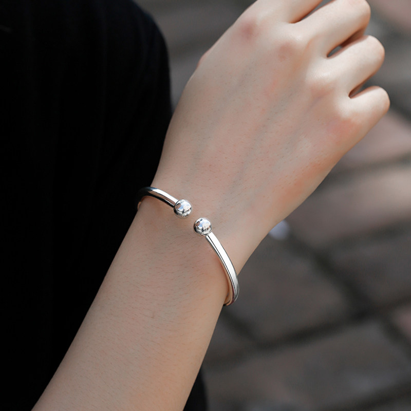 九乐999银手镯女开口圆珠光面