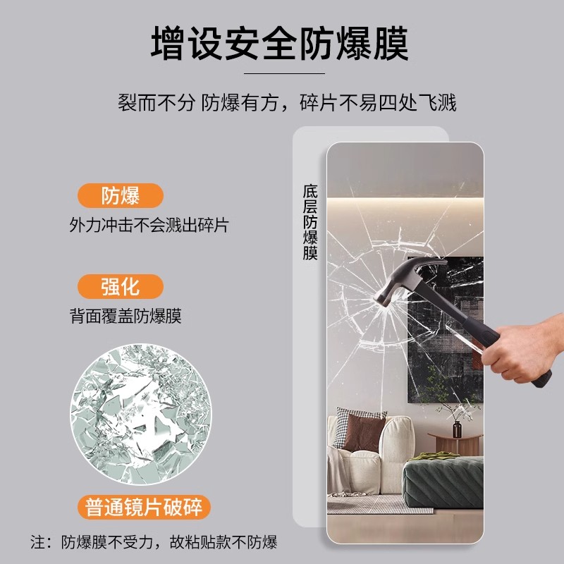 轻奢无框全身镜免打孔穿衣镜壁挂式卧室家用试衣防爆镜子贴墙自粘